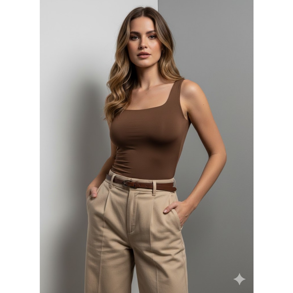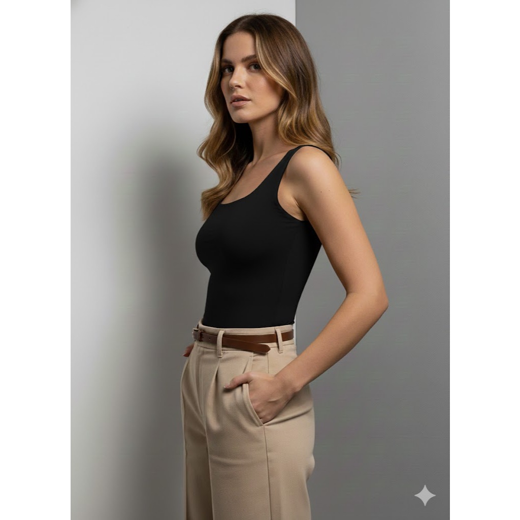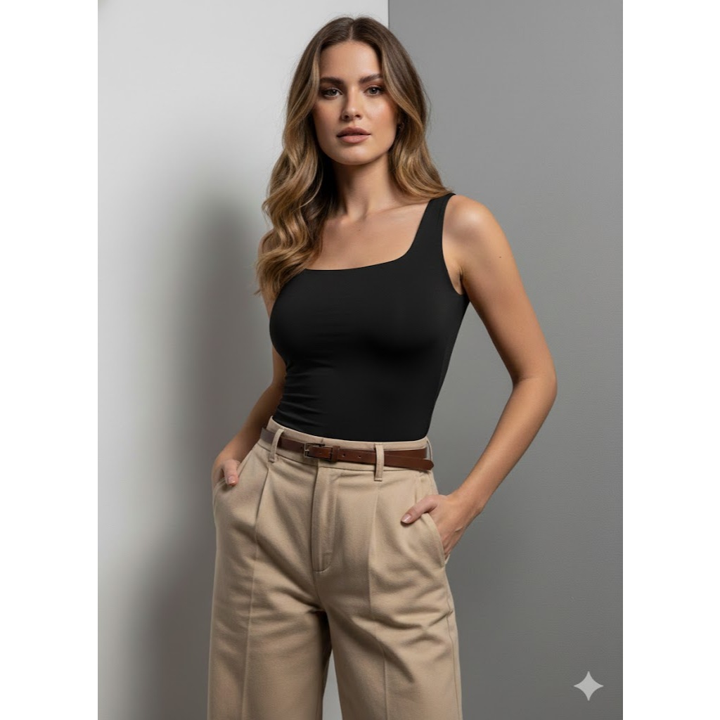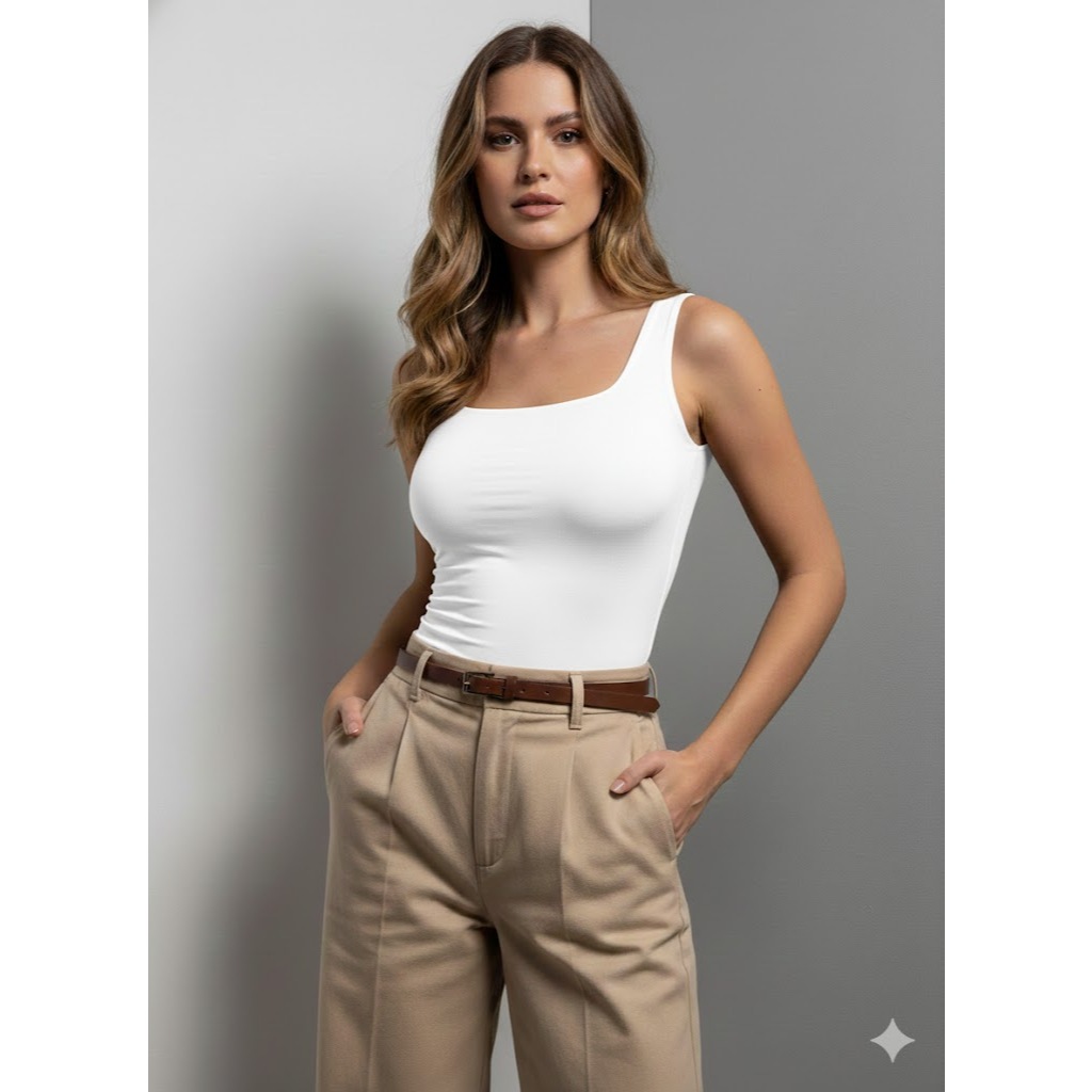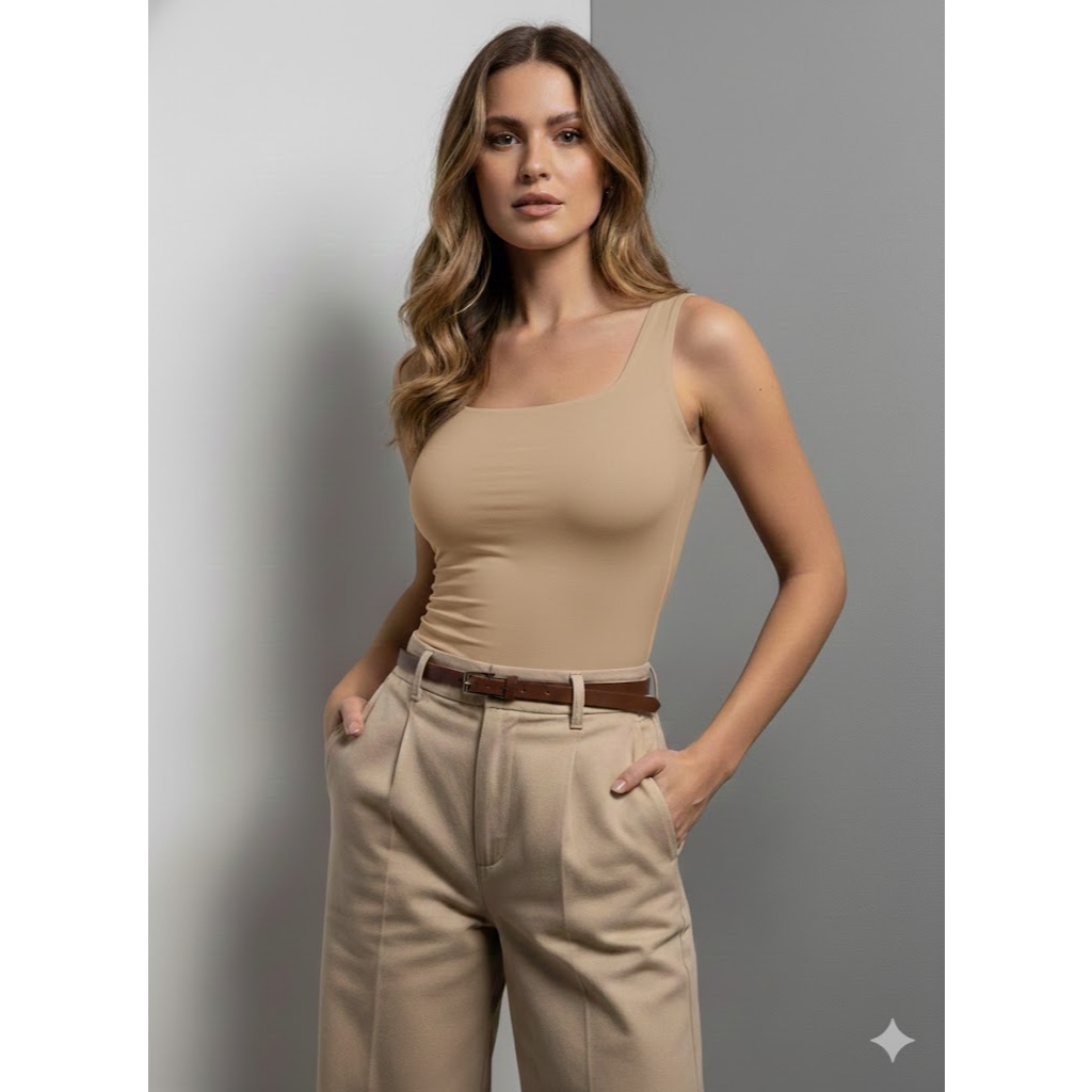 Kit 2 Regata Feminina Gola Quadrada Suplex Premium Não Fica Transparente