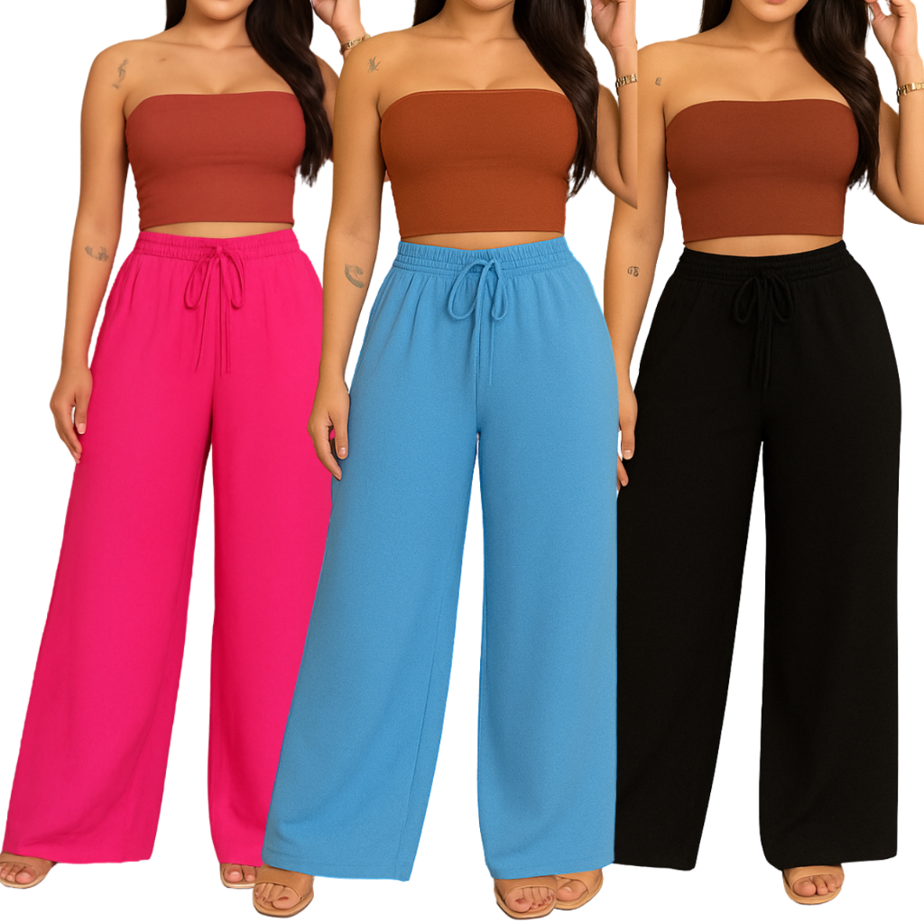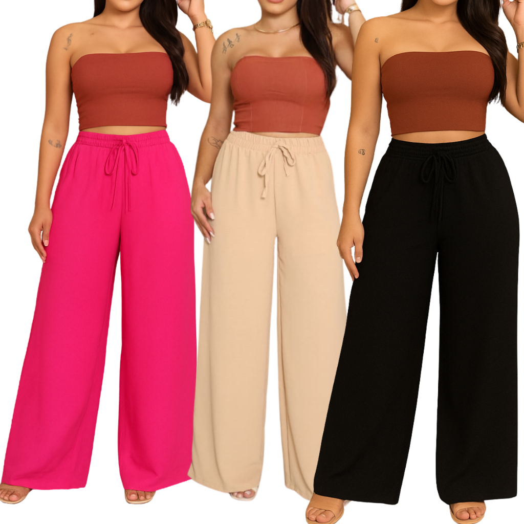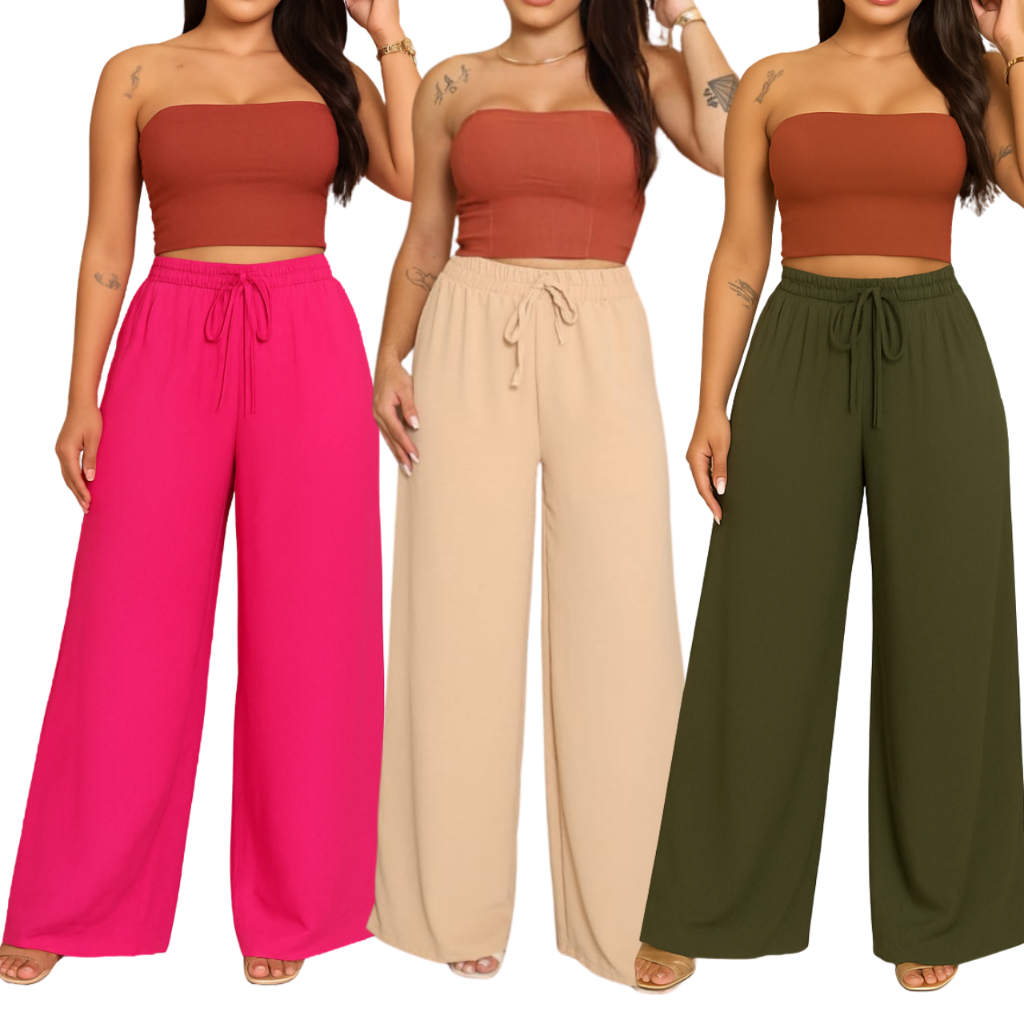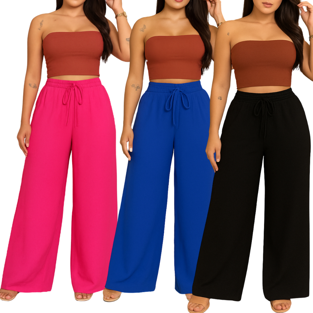kit 3 Calça feminina wide leg pantalona duna com elastano