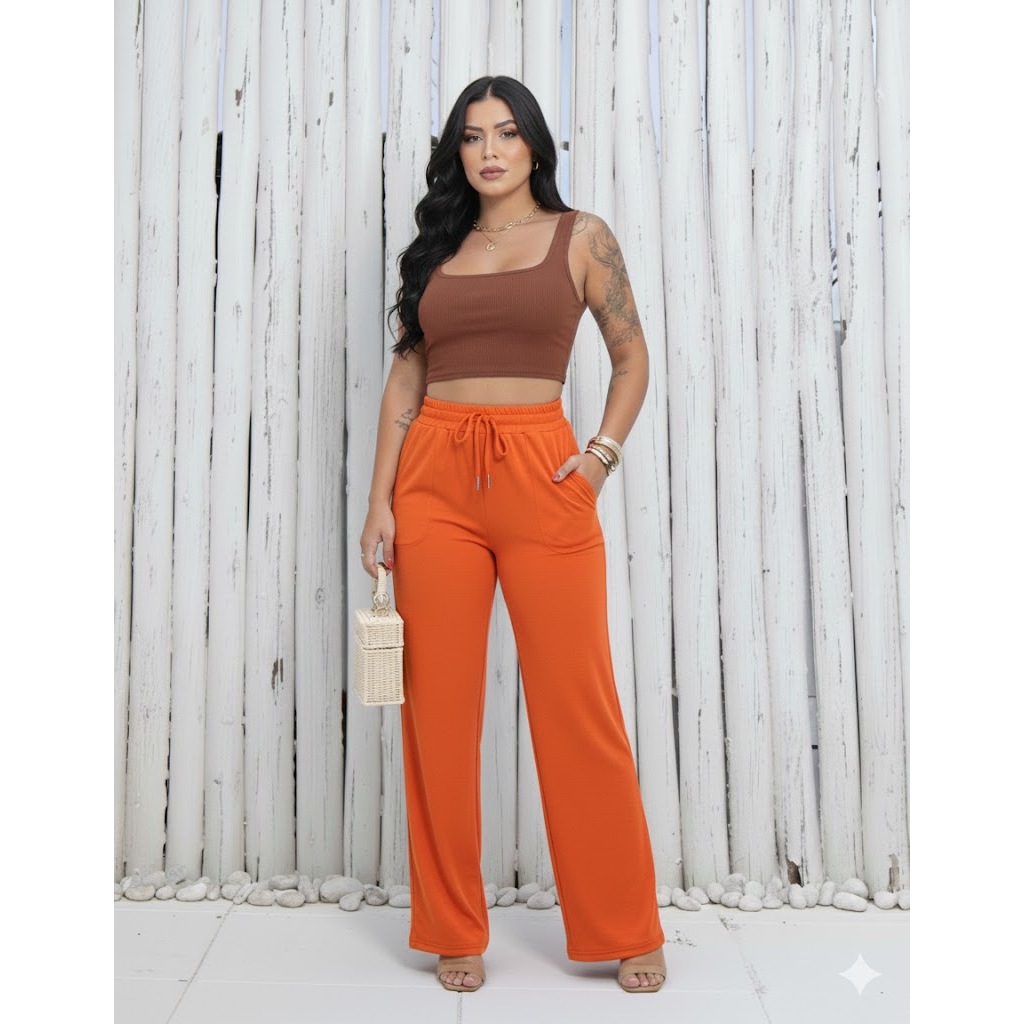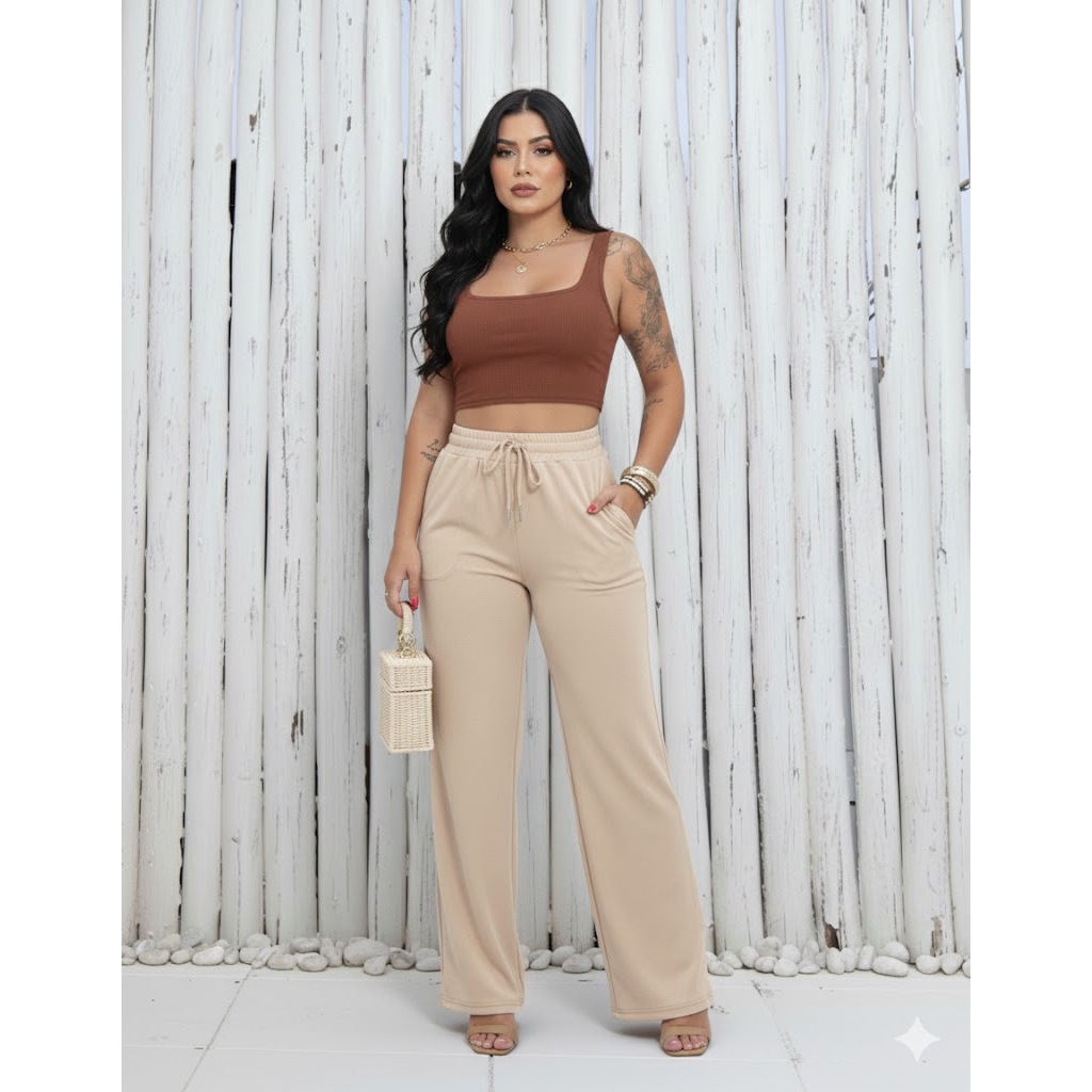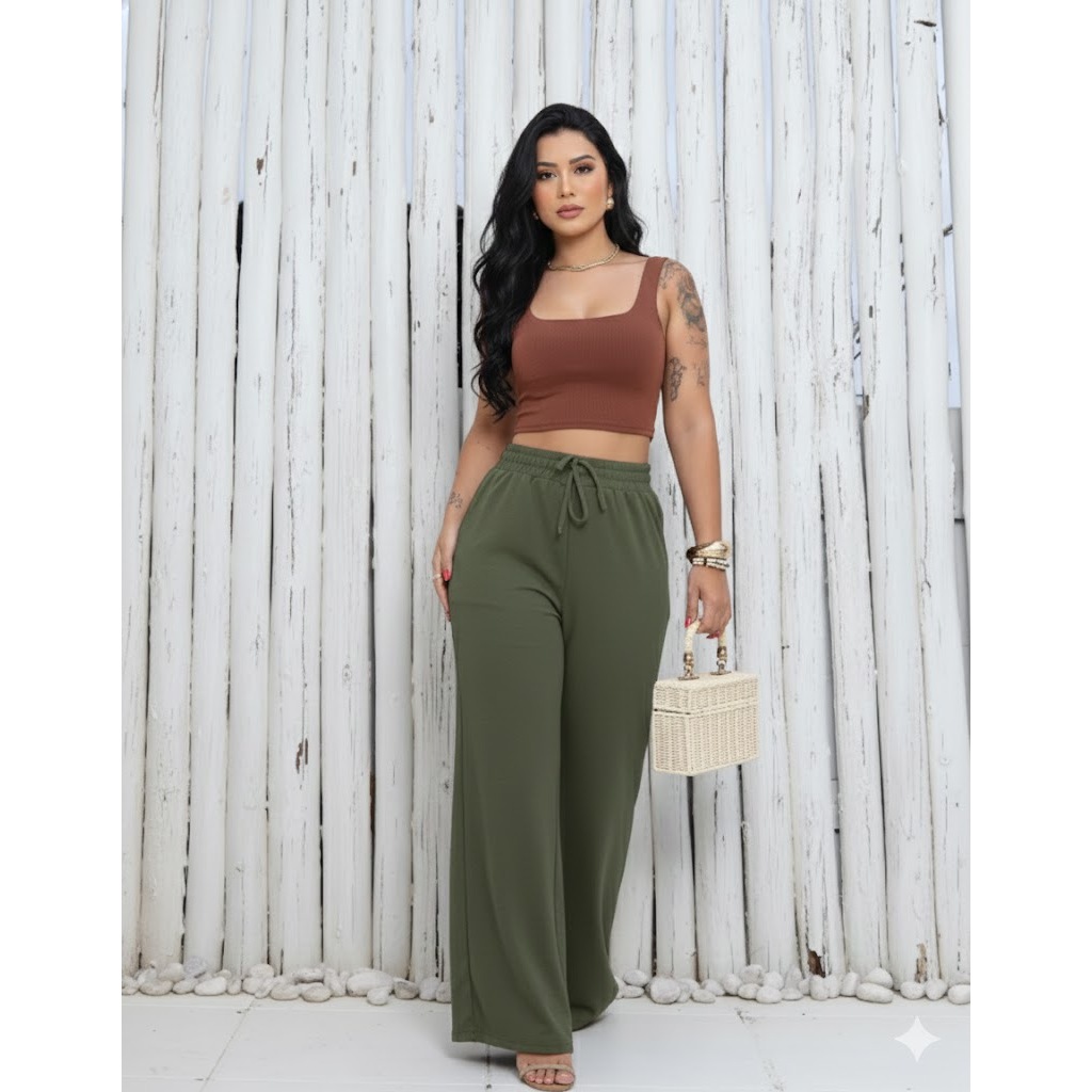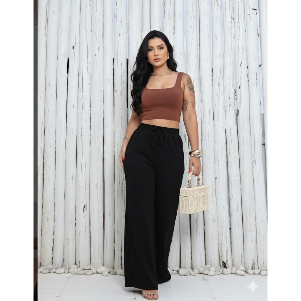 kit 3 Calça feminina wide leg pantalona duna com elastano