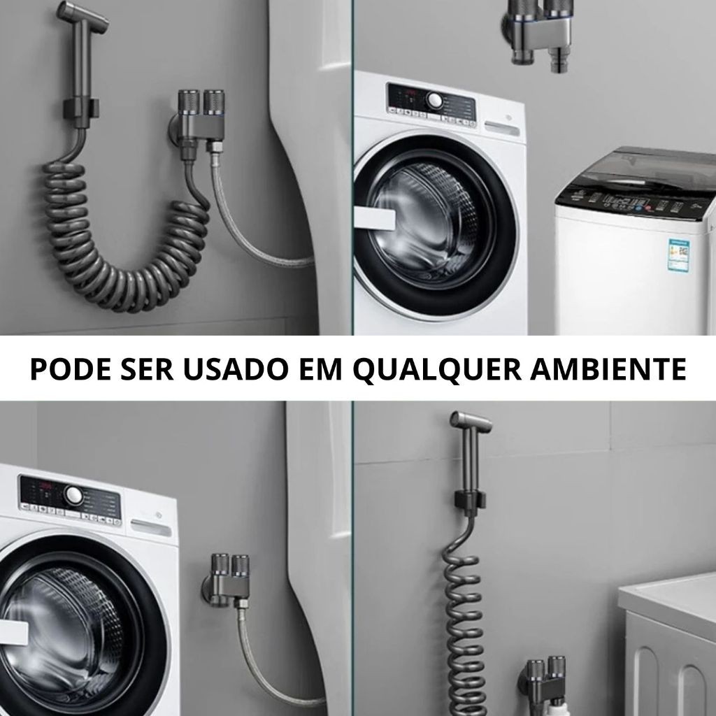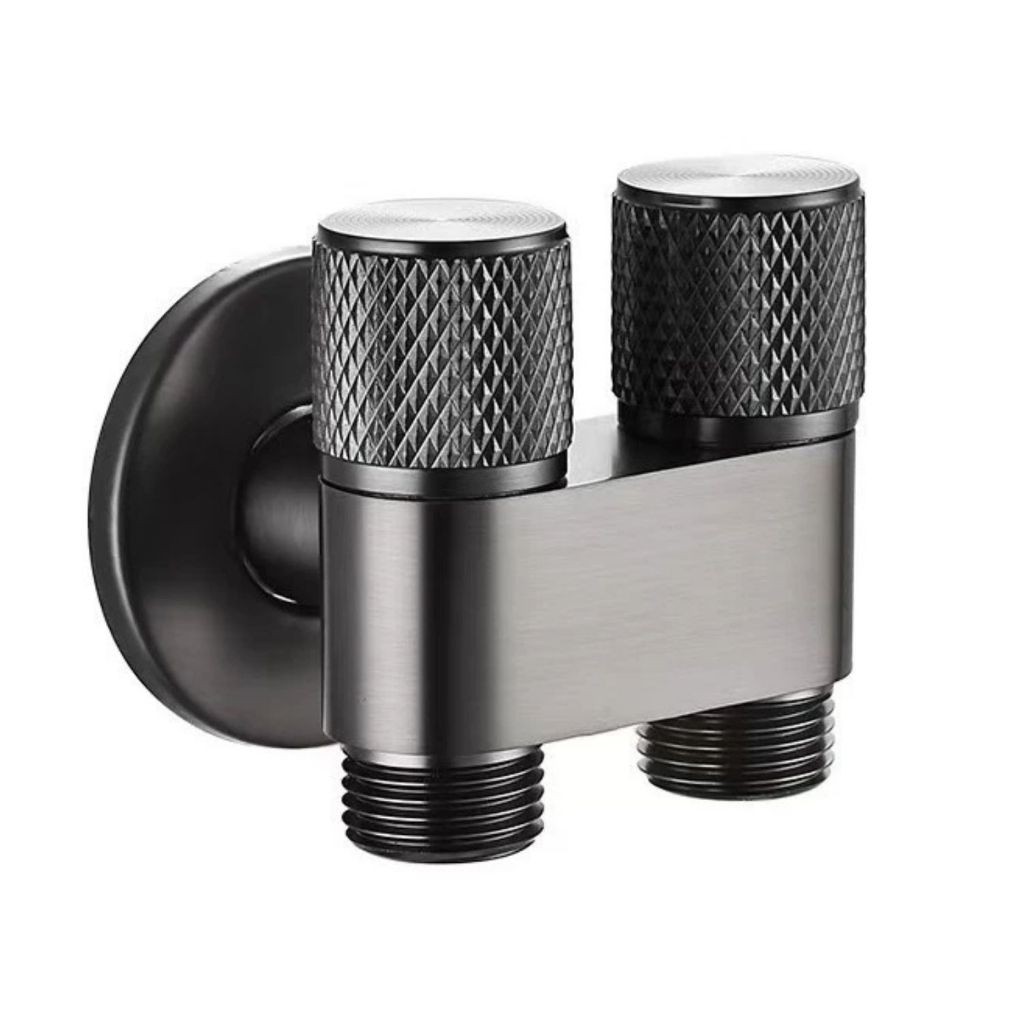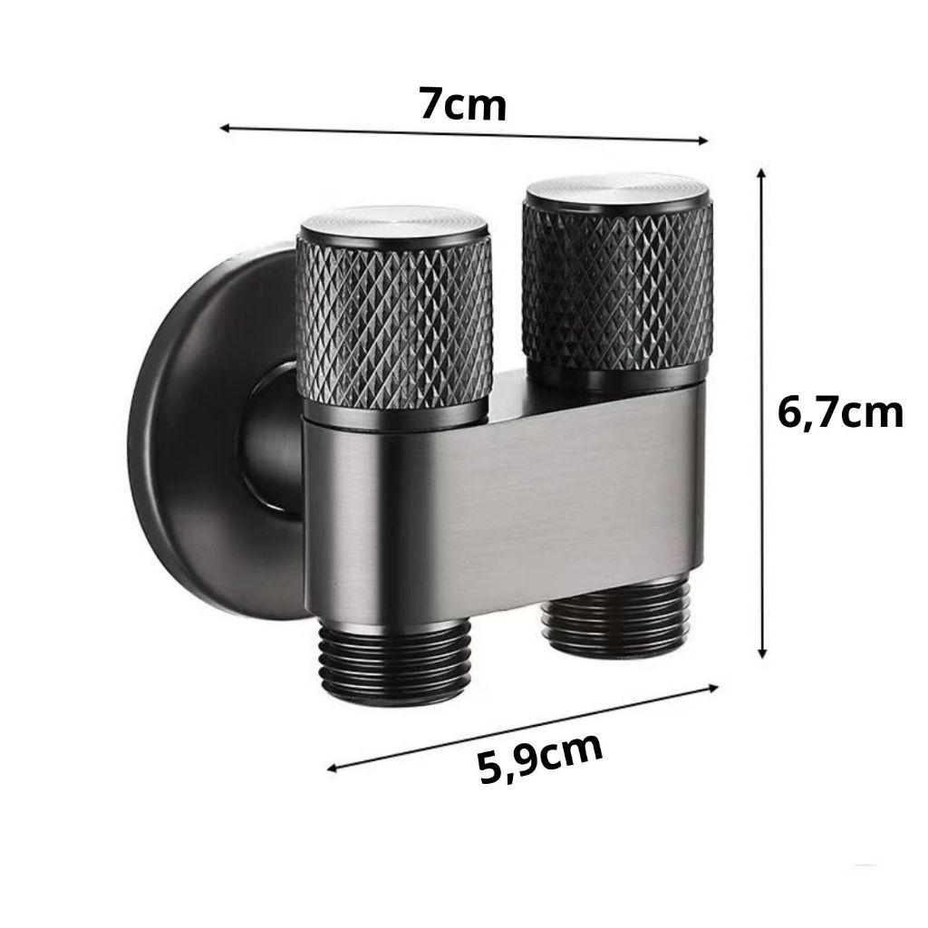 Registro Duplo Cromado P/ Máquina Lava E Seca 1/4 Volta Cor Preto Saída 1/2 Dupla