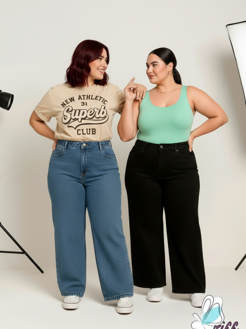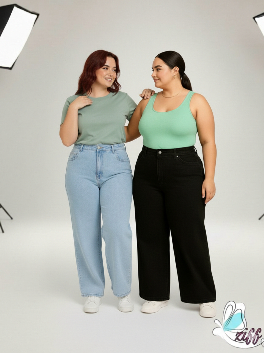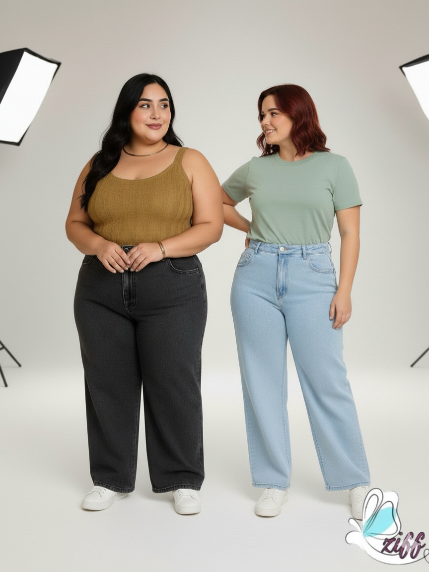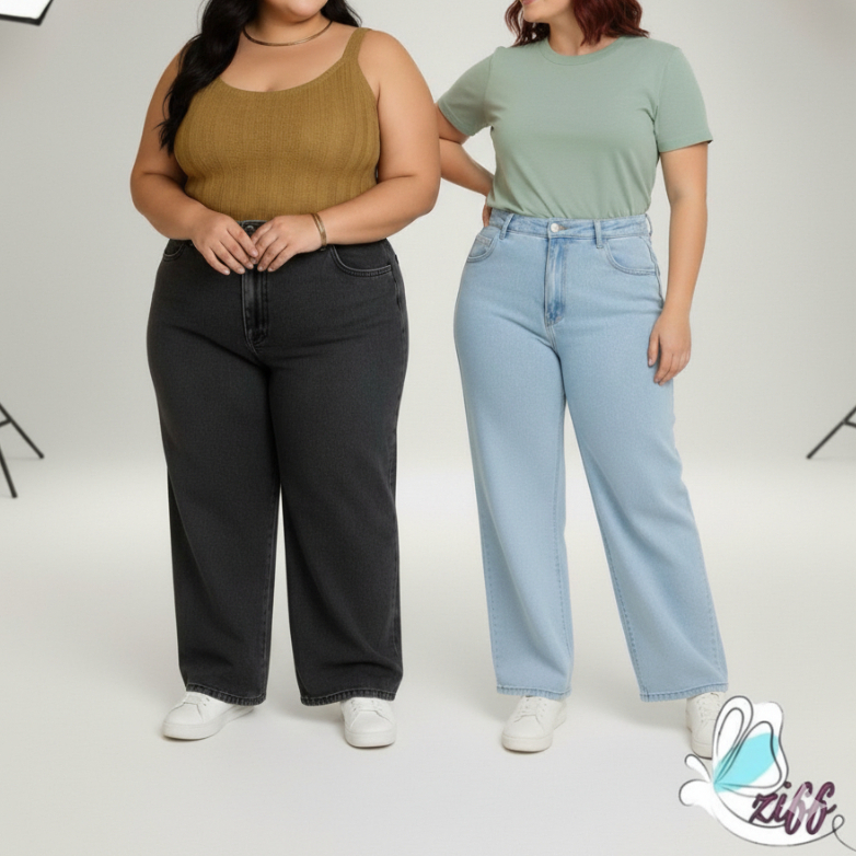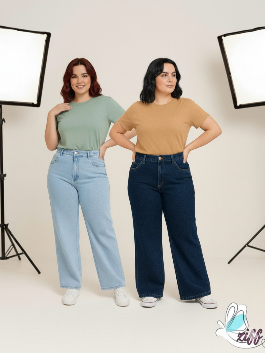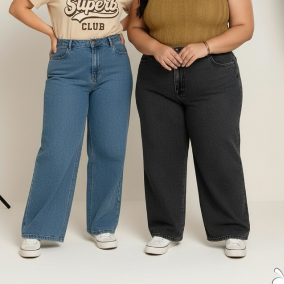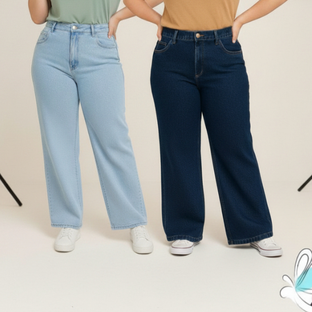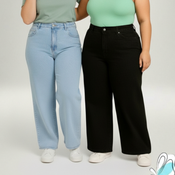 KITS 2 calça jeans wide leg plus size 46 AO 54