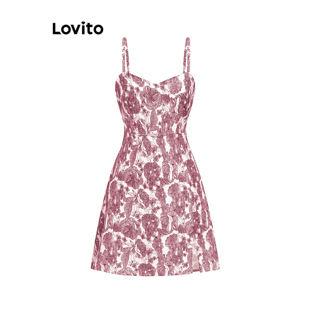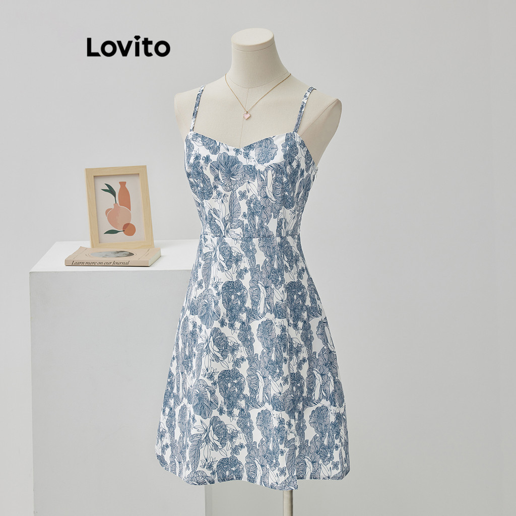Lovito Boho Vestido Feminino Floral com Fenda L68ED195 (Azul)