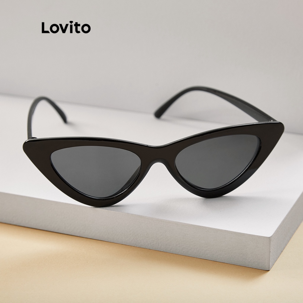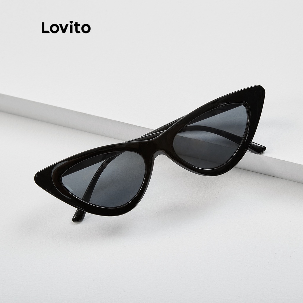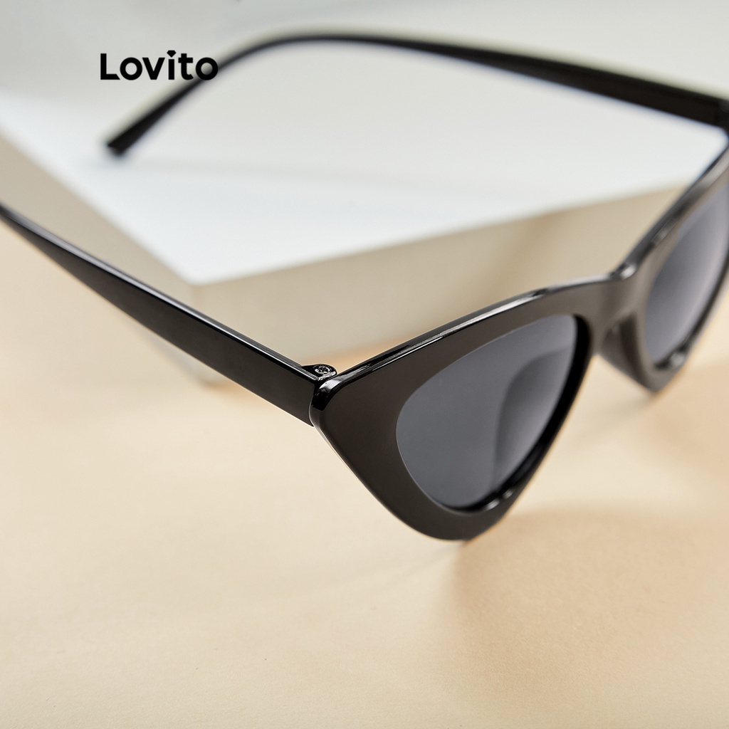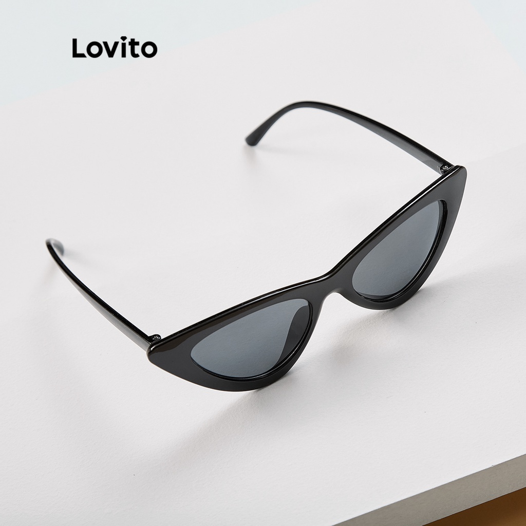 Lovito Óculos de Sol Casual Liso com Caixa de Óculos L17M183 (Preto)