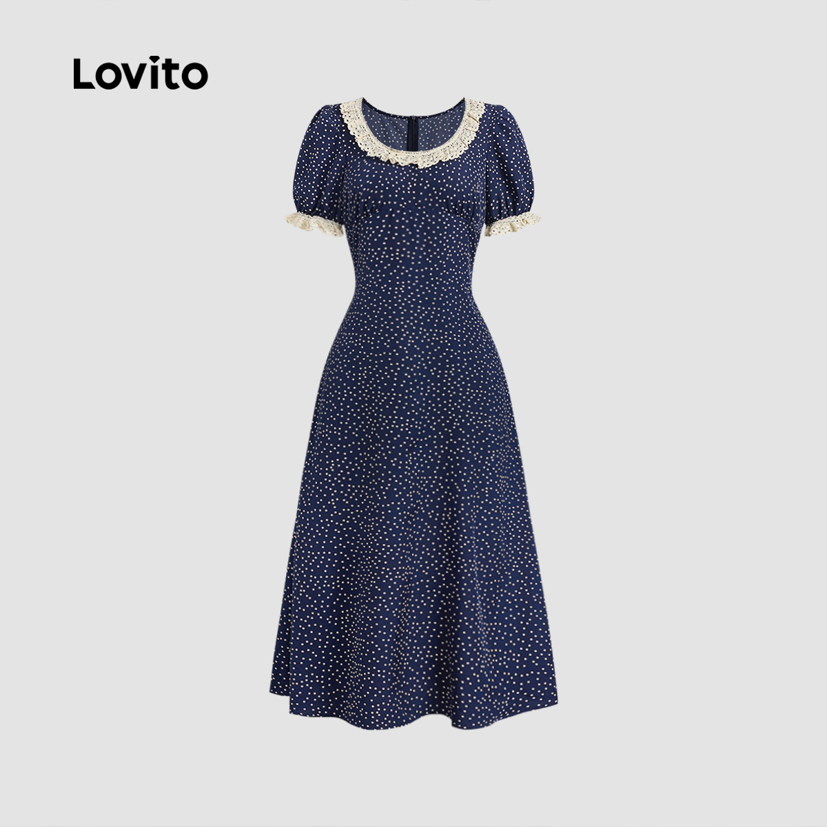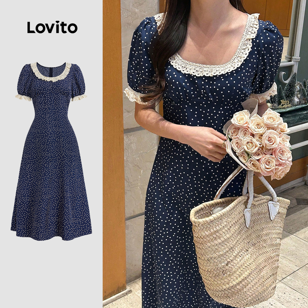 Lovito - Vestido Elegante de Renda com Costura Primavera/verão Vestido Azul-marinho para mulheres L137LD118