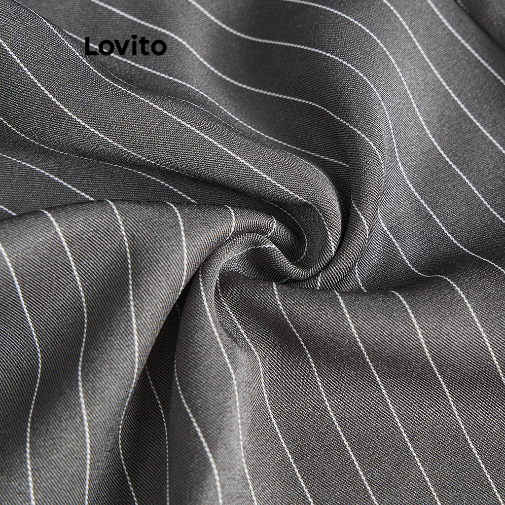 Lovito Casual Calça Feminina Listrada com Zíper L67AD134 (Cinza/Preta)