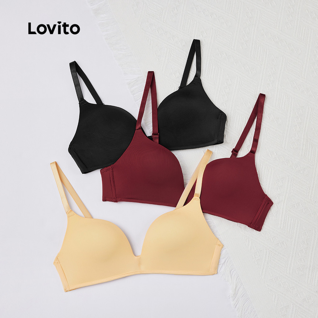 Lovito Sutiãs Bralette Casual Respirável Sem Fio Push Up Copa Cheia Com Bojos Não Removíveis Para Mulheres L233L079