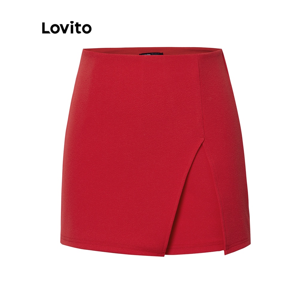 Lovito Shorts Casuais De Verão/primavera Modelo Slim Fit Com Fenda Frontal Modelo Básico Feminino L21AS062(preto/camelo)