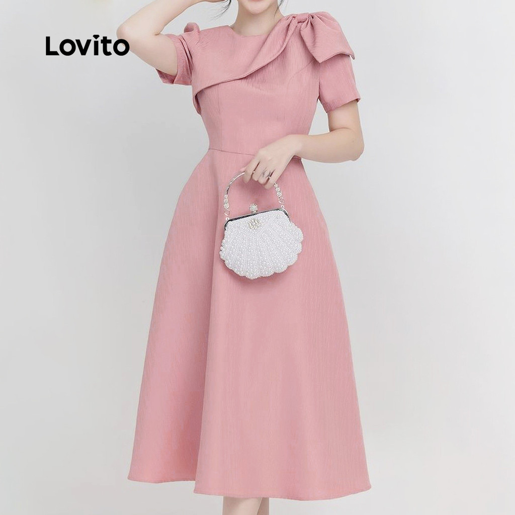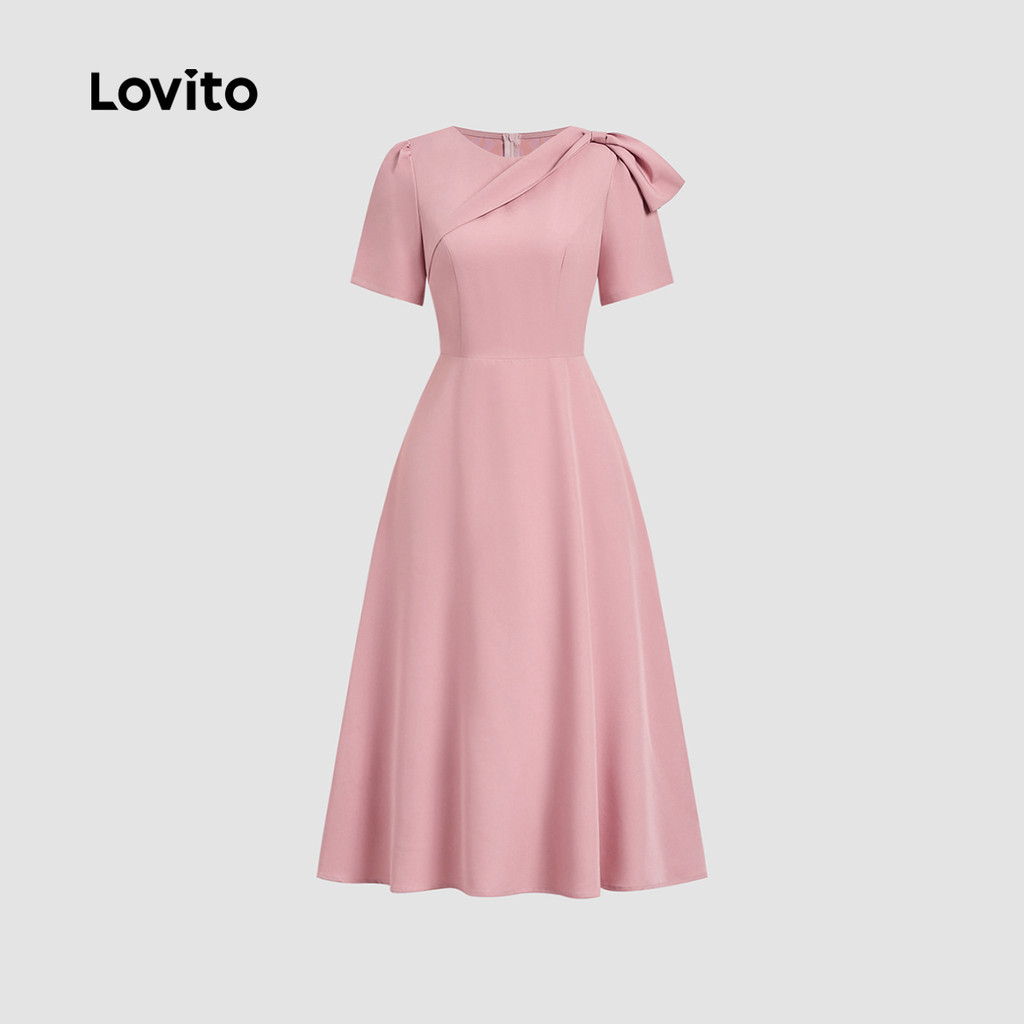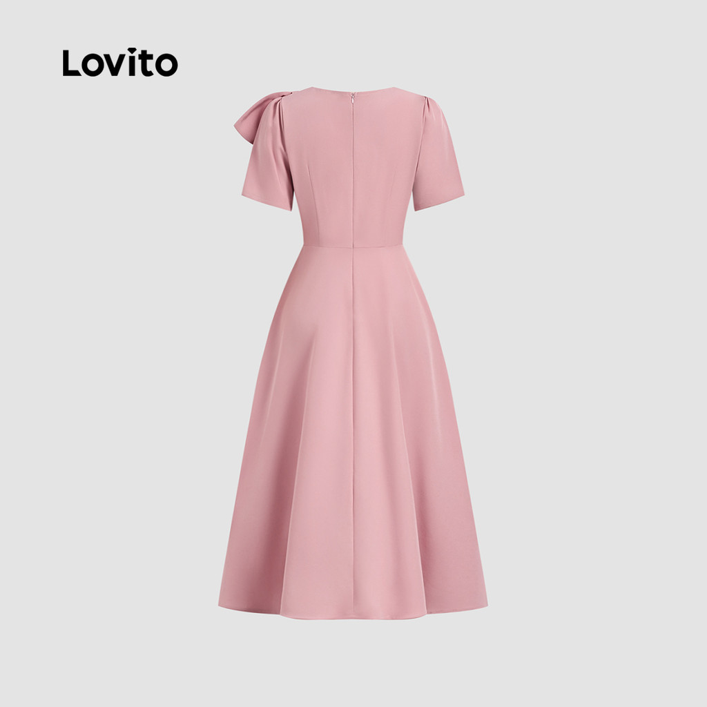 Lovito - Vestido Elegante Rosa Primavera/Verão Com Nó Liso Para Mulheres L134LD123