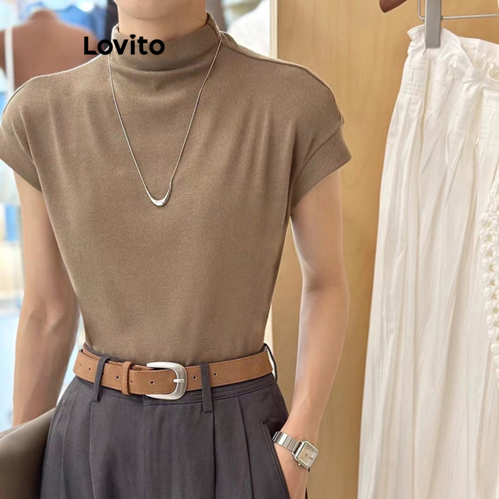 Lovito Casual Camiseta Feminina Lisa Básica L68ED302 (Multicolorido)