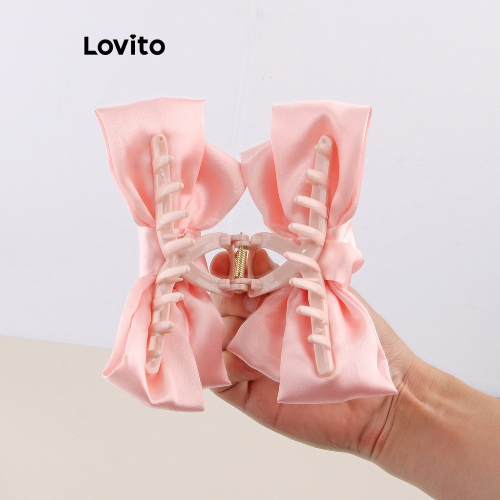 Lovito Grampos De Cabelo Casuais Com Laço Liso Para Mulheres LFA08154 (Branco/Rosa/Azul/Preto)