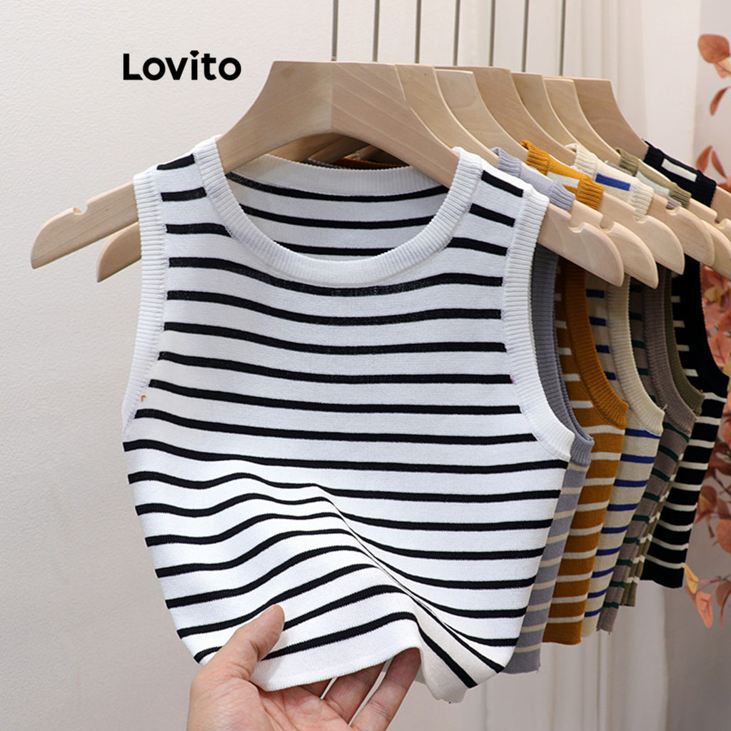 Lovito Regata Casual Com Estampa Listrada Para Mulheres LNE37012 (Multicolorido)