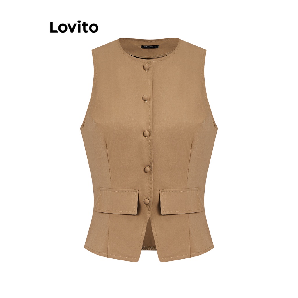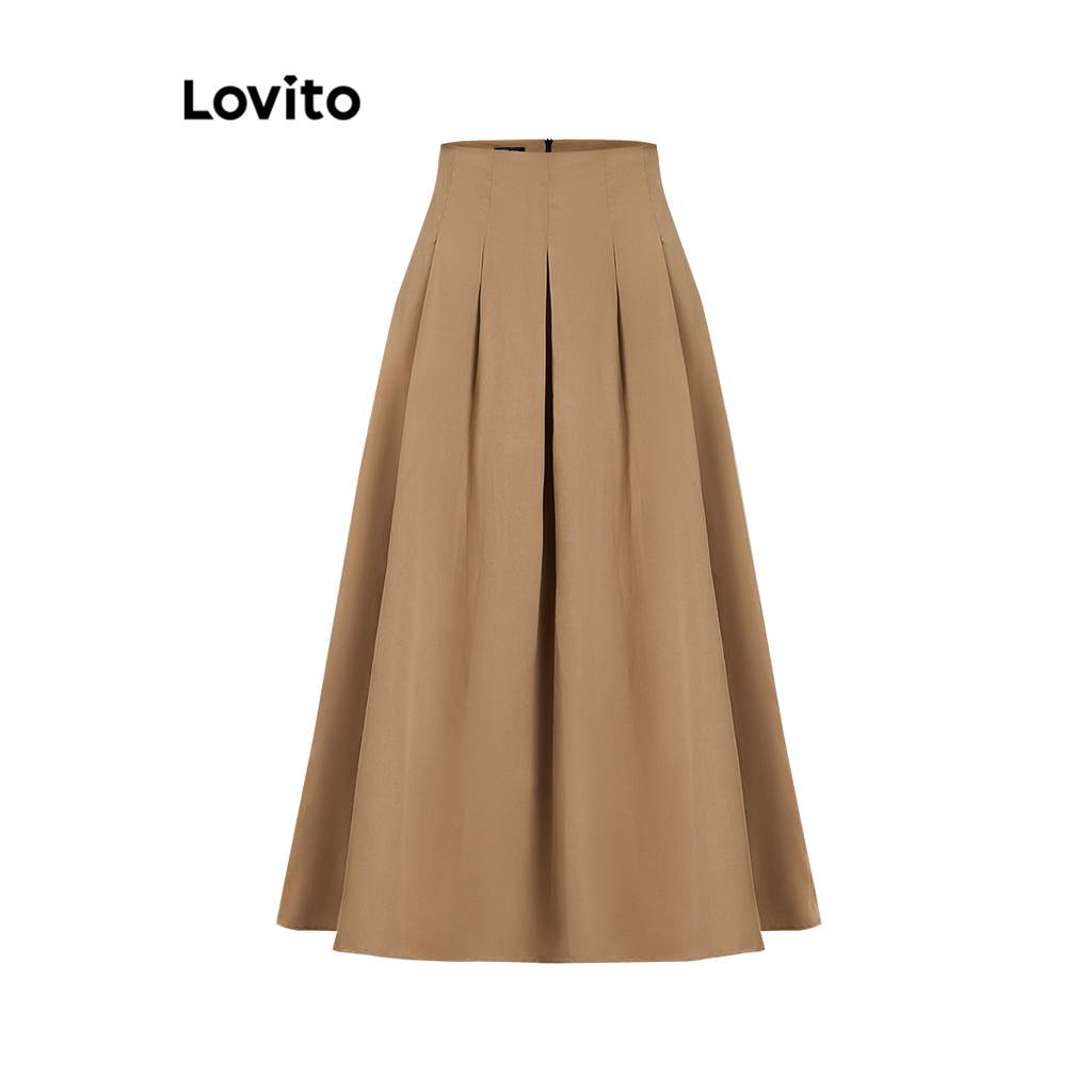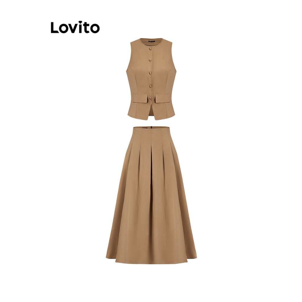 Lovito Conjuntos De Saia Casual Com Botão Liso Plissado Superior Ou Inferior Para Mulheres L74ED289