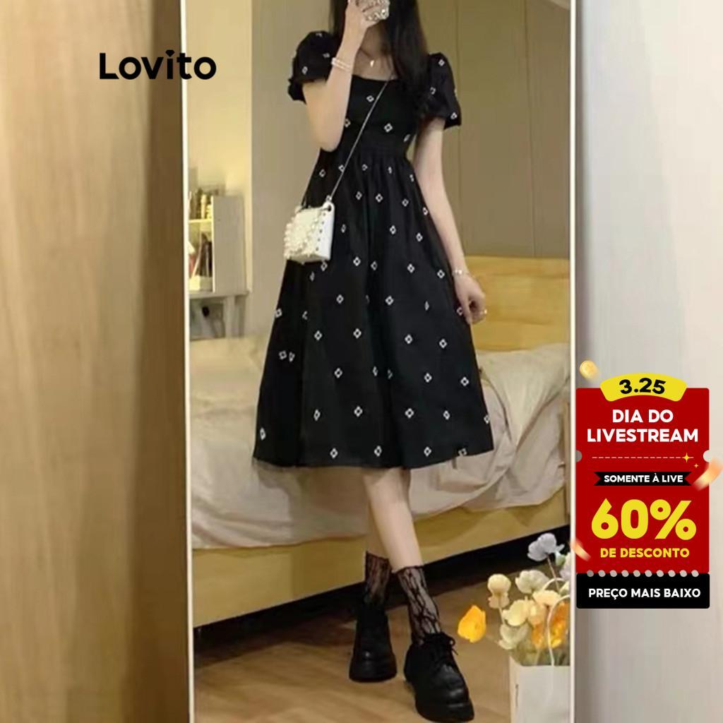Lovito Vestido Casual Floral Manga Bufante Gola Quadrada Vestido De Verão/Primavera Para Mulheres LNA05105