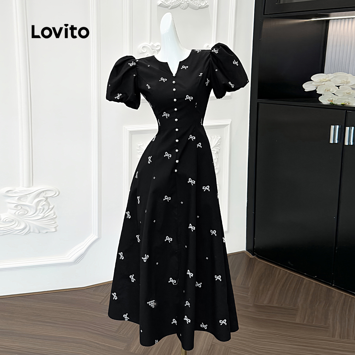 Lovito Vestido Casual Floral Manga Bufante Gola Quadrada Vestido De Verão/Primavera Para Mulheres LNA05105