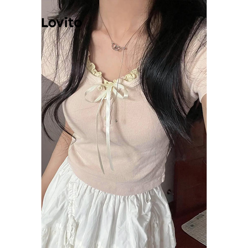 Lovito Camiseta Casual Com Cordão Liso Para Mulheres LNA27322 (Rosa)