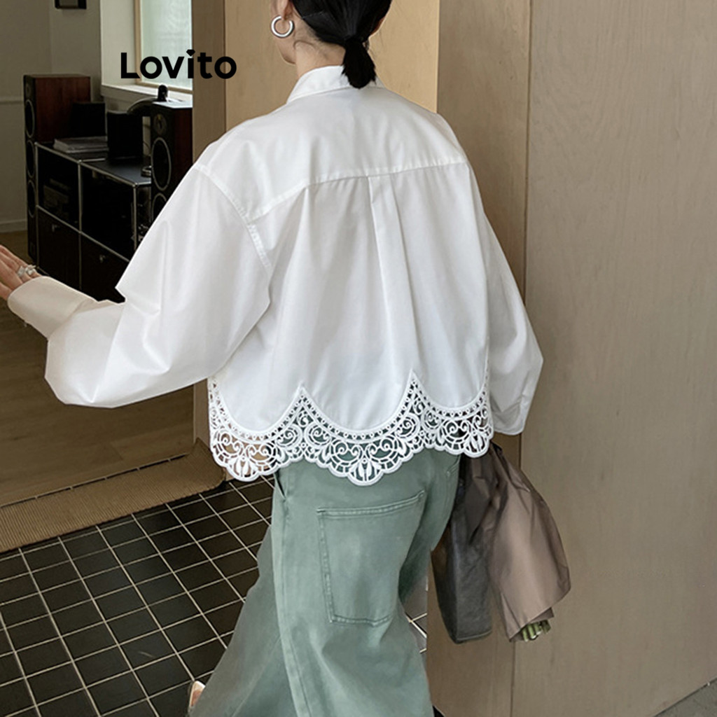 Lovito Blusa Casual Blusa De Renda Lisa Para Mulheres LNE21040 (Branco)