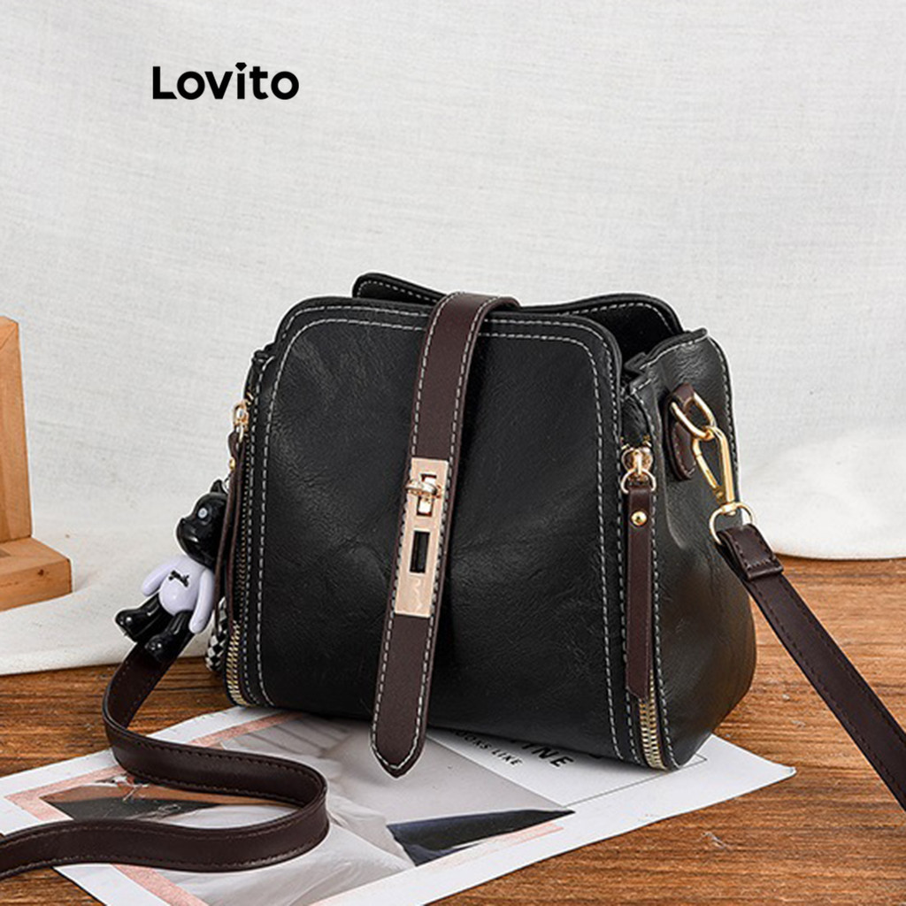 Lovito Bolsa De Ombro Pequena Casual Simples Básica Pequena Bolsa De Ombro Para Mulheres LNA32140 (Preto)