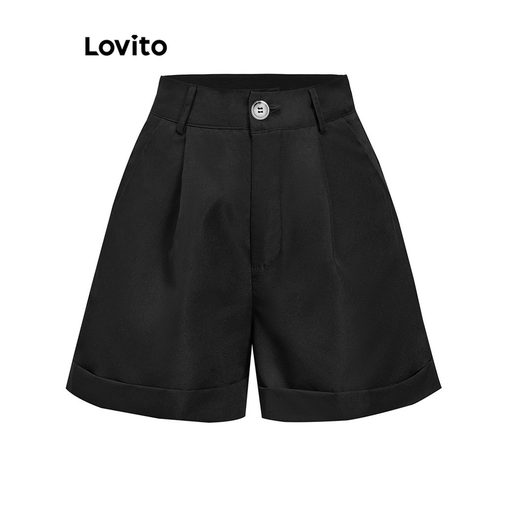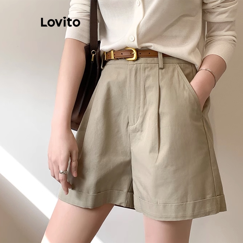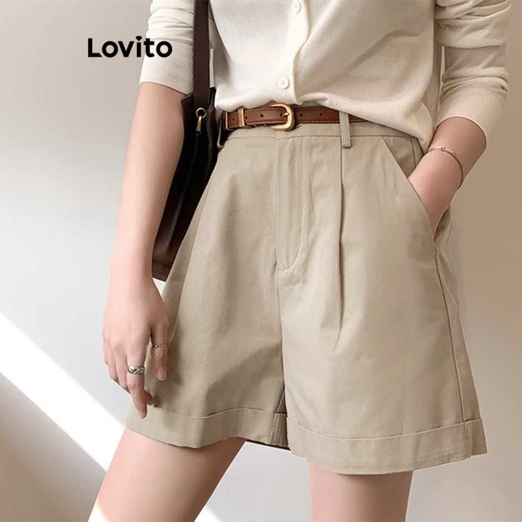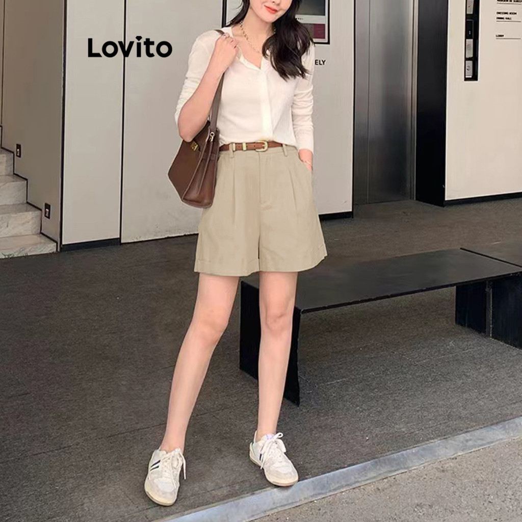 Lovito Shorts Casuais Com Zíper Liso Para Mulheres LNA27329 (Multicolorido)