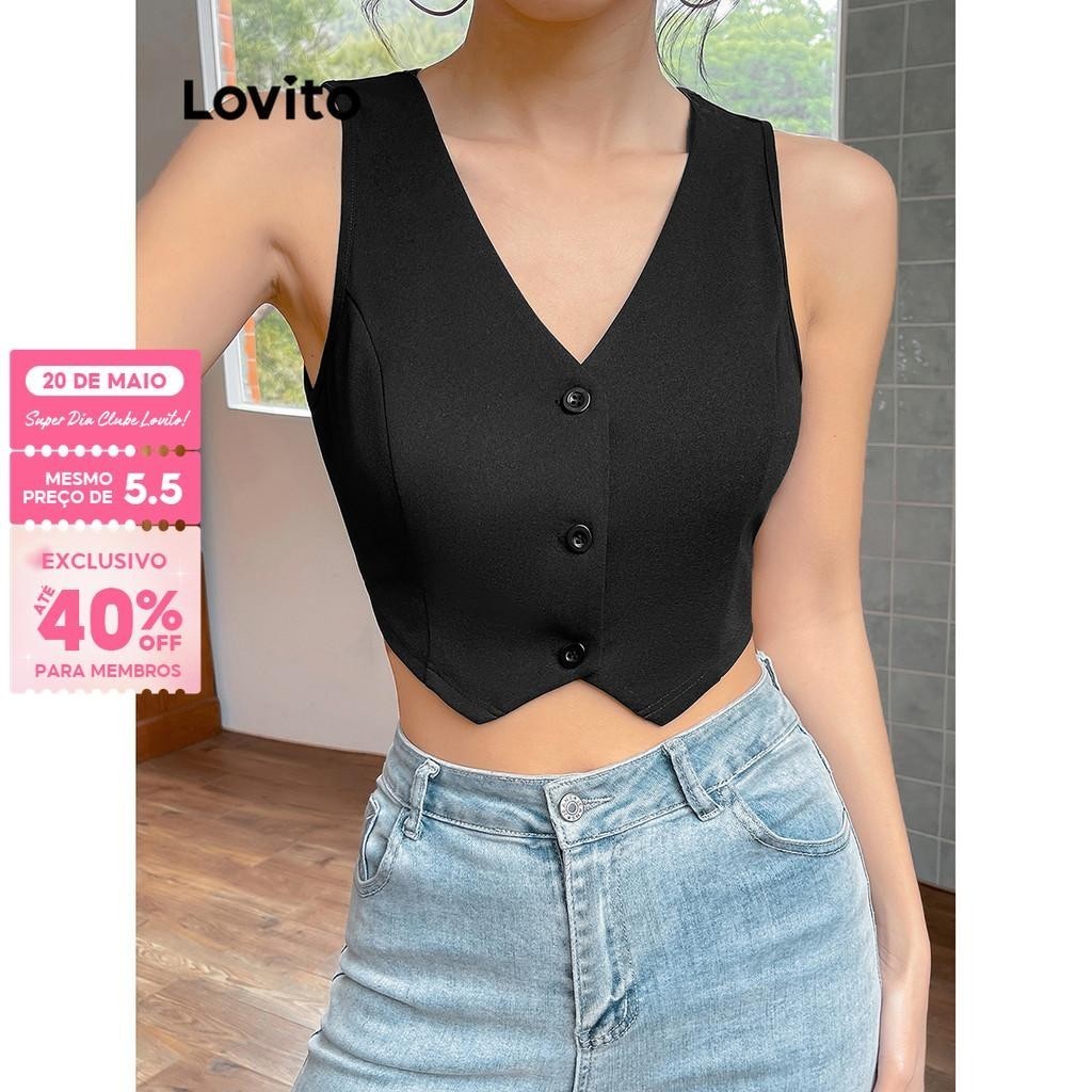 Lovito Colete Curto com Botão Frontal L71ED045 (Multicolorido)