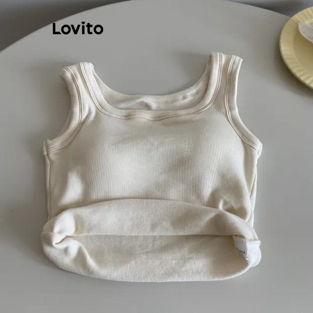 Lovito Regata Casual Lisa Básica Regata Para Mulheres LNE16170 (Café/Branco)