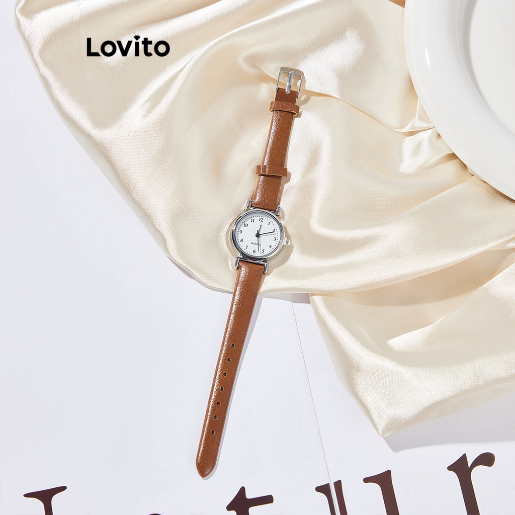 Lovito Casual Simples Relógio Feminino Básico Quartzo L63AD288 (Marrom/Branco/Verde/Preto)