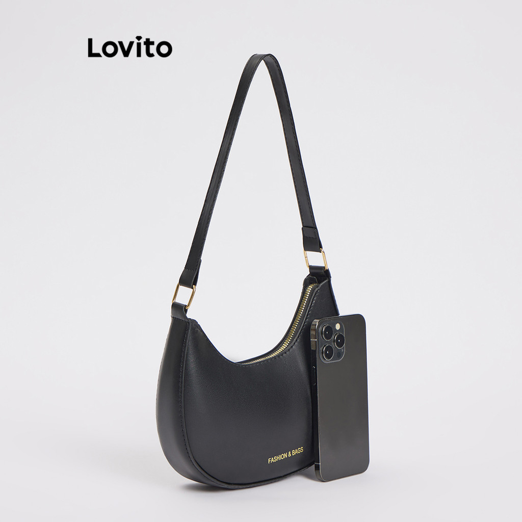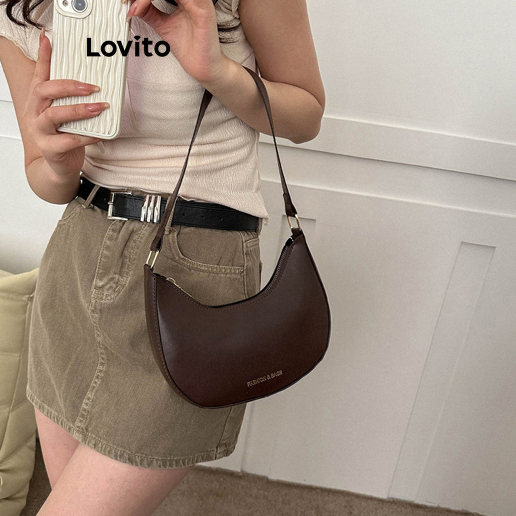 Lovito Bolsa De Ombro Casual Bolsa De Ombro Básica Lisa Para Mulheres L66AD030 (Marrom/Preto)