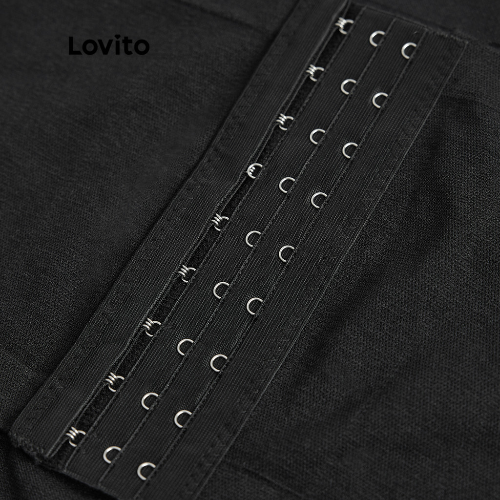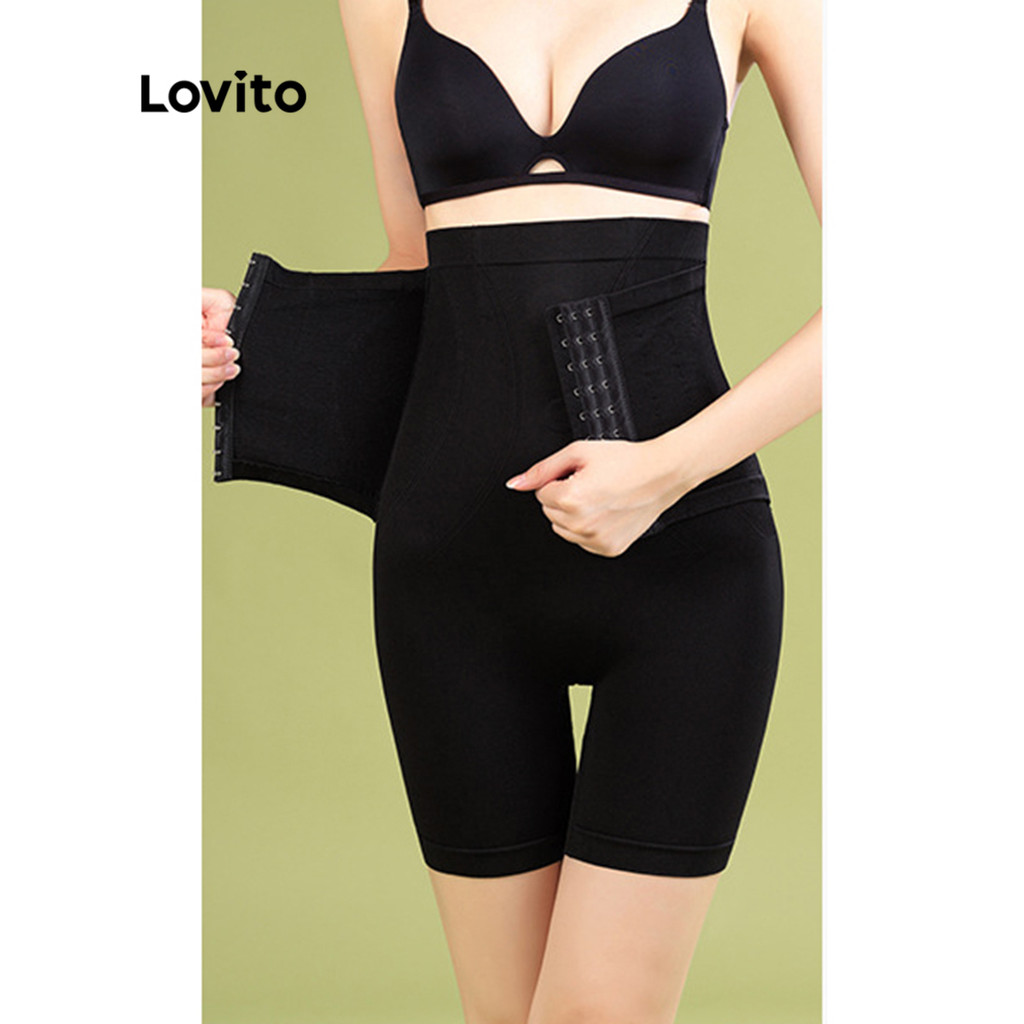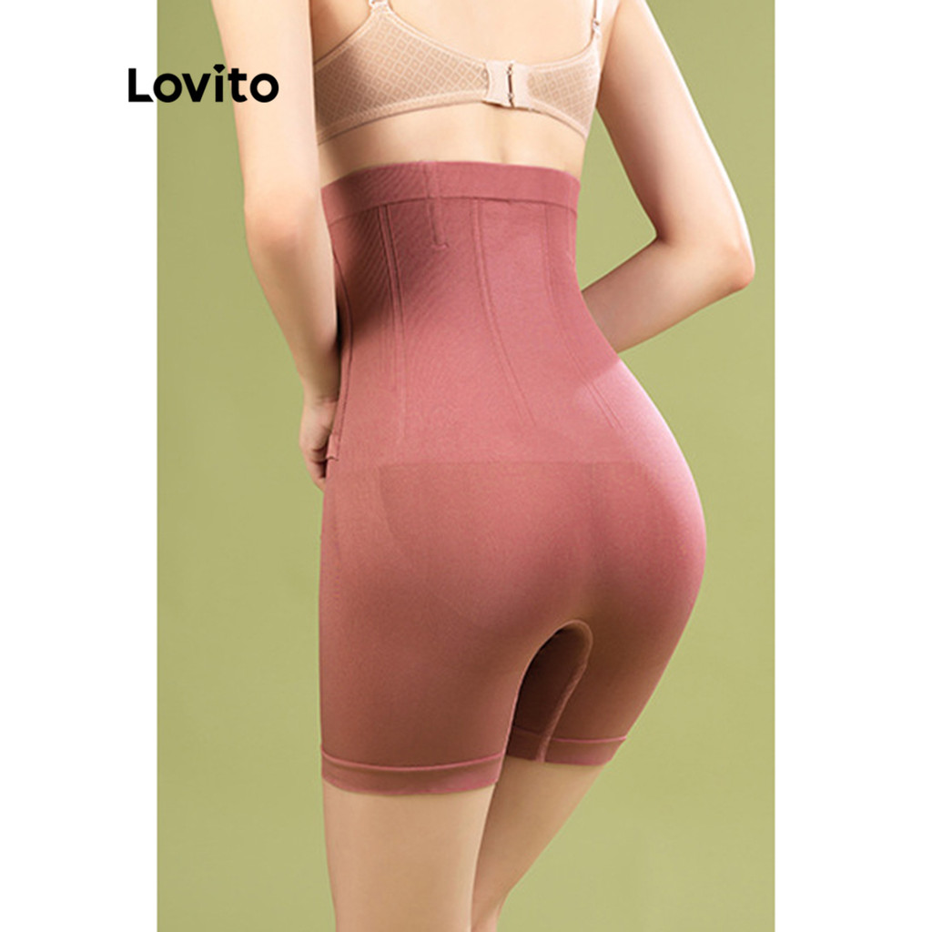 Lovito Shapewear Casual Liso com Botões, Cinturas Múltiplas, Short Corset Feminino L48L053 (Abacate/Rosa Sujo/Preto)