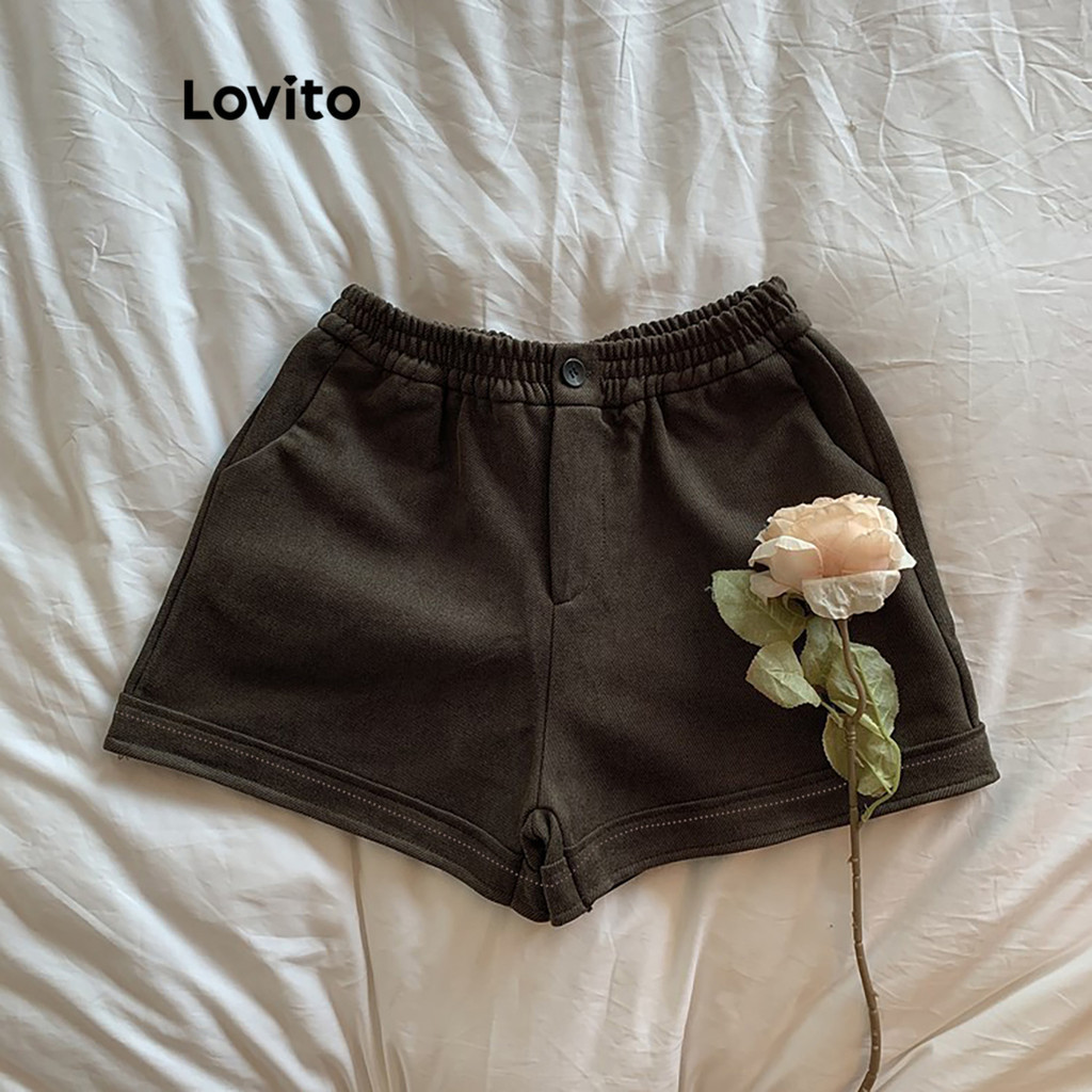 Lovito Shorts Casuais Shorts Básicos Com Botões Lisos Para Mulheres LNE36142 (Multicolorido)
