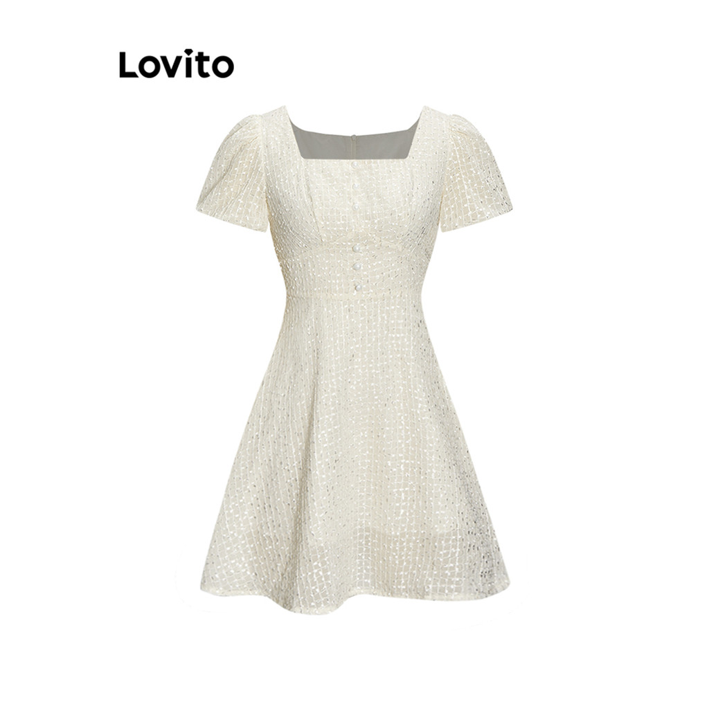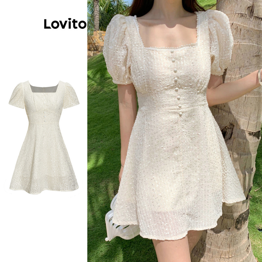 Lovito Vestido Boho Com Botão Liso E Bainha Com Babados Frontais Para Mulheres L68ED202 (Multicolorido)