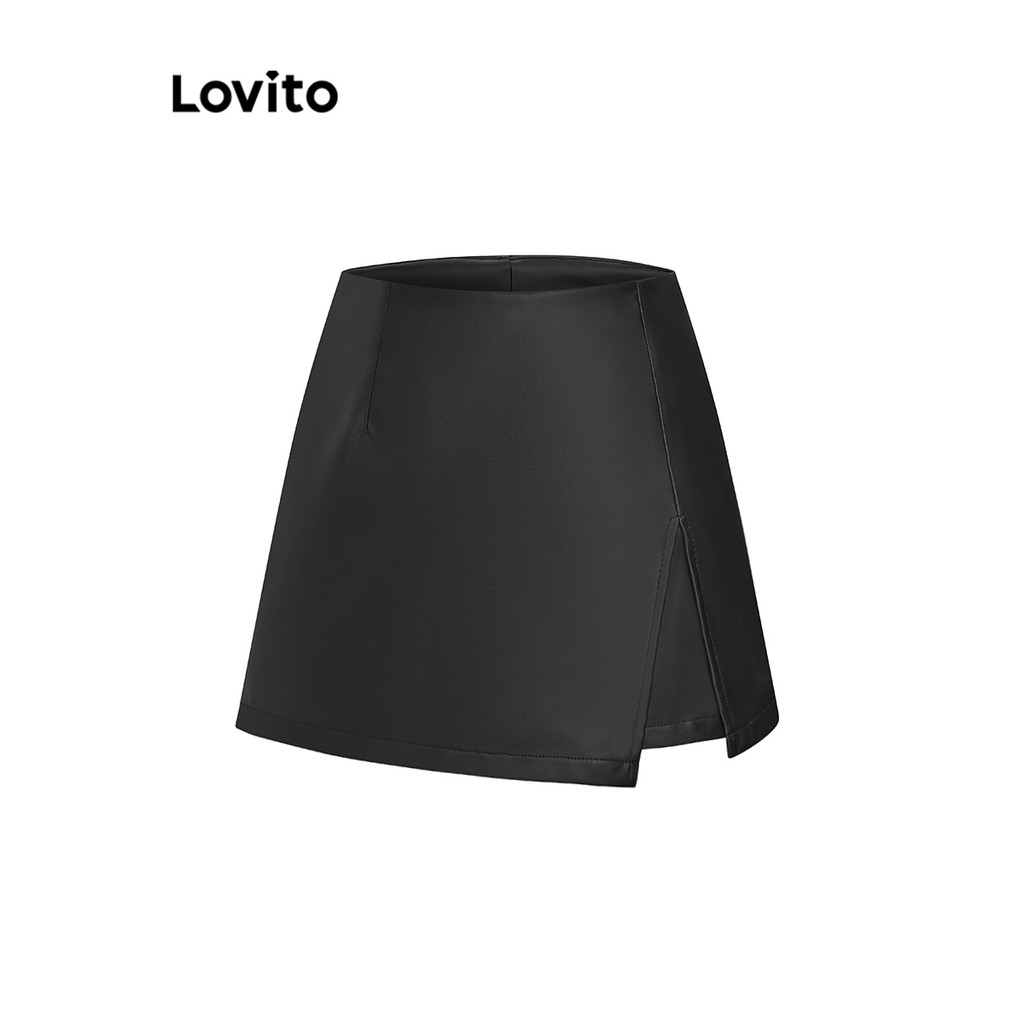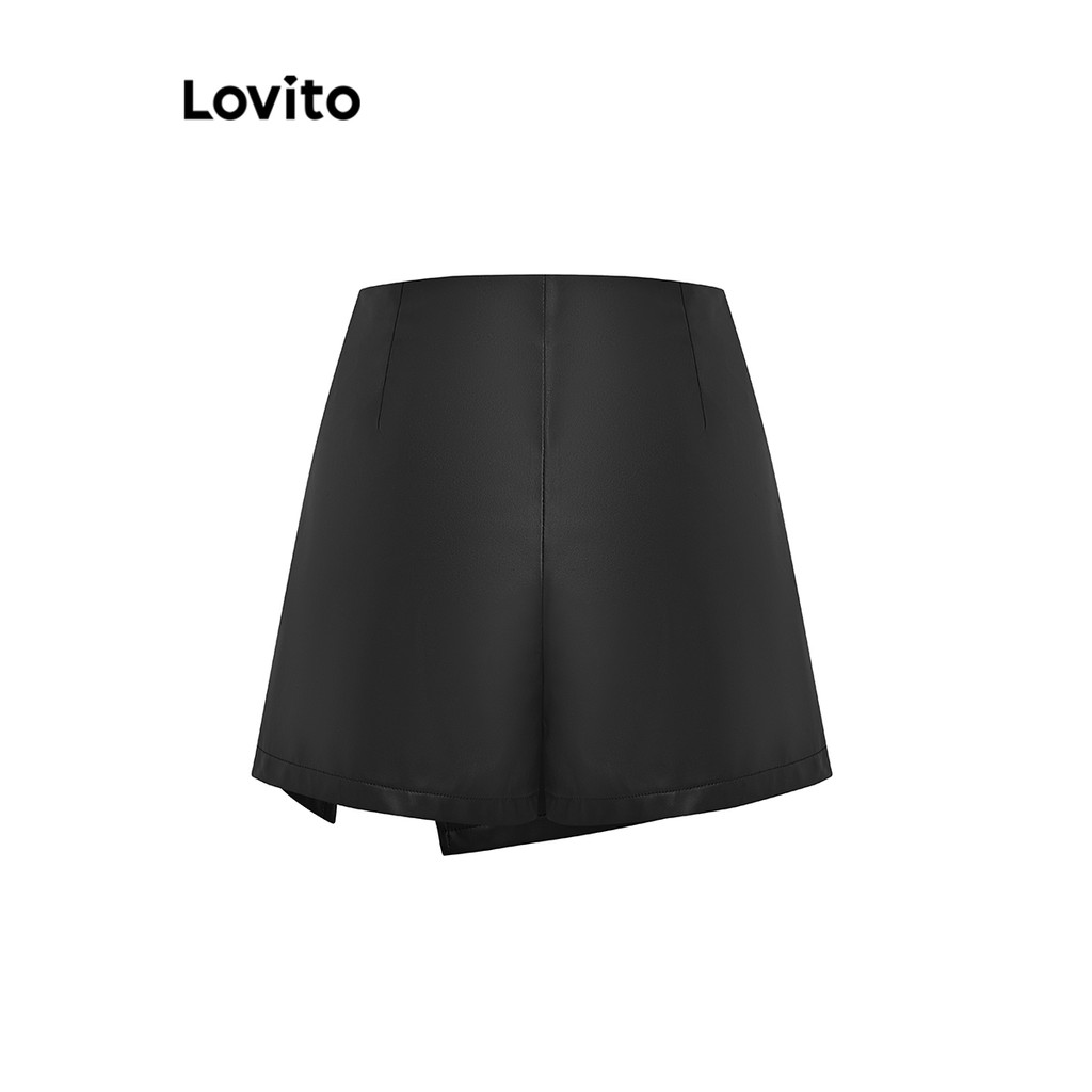 Lovito Shorts Casuais Com Zíper Liso Falso 2 Em 1 Shorts Para Mulheres L58AD065 (Preto)