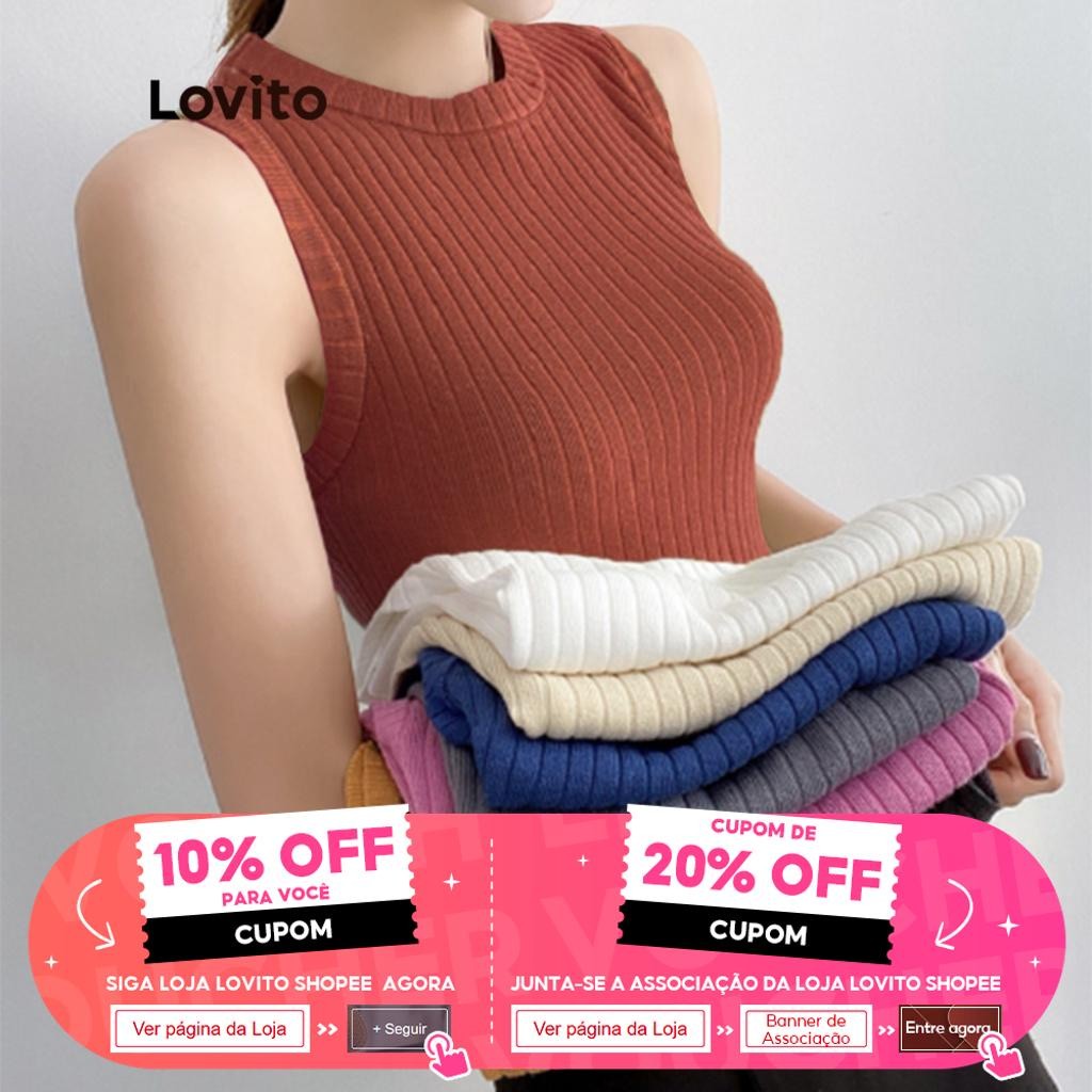 (Item Essencial) Lovito Regata Básica Sem Manga Liso Sem Mangas Crop Tops Slim Fit Para Mulheres
