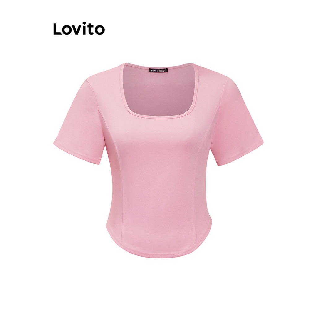 Lovito Camiseta Casual Com Linha De Estrutura Lisa Para Mulheres LNE31215 (Multicolorido)