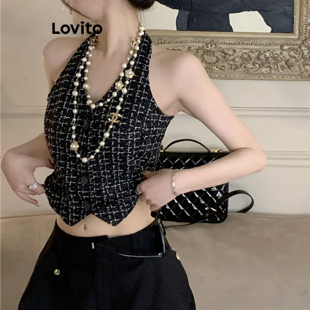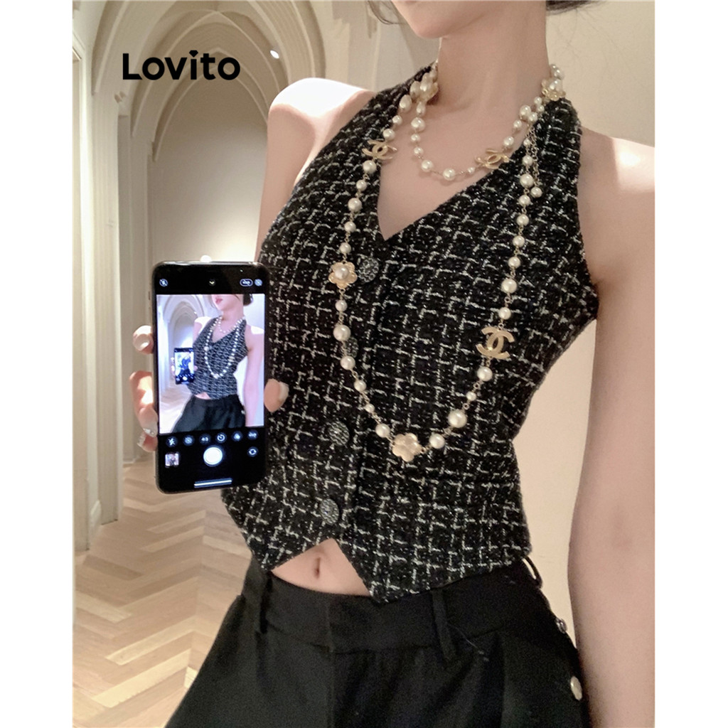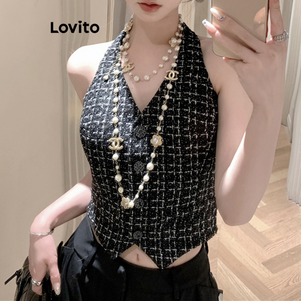 Lovito Regata Casual com Botões Frontais para Mulheres LNA17133 (Preto)