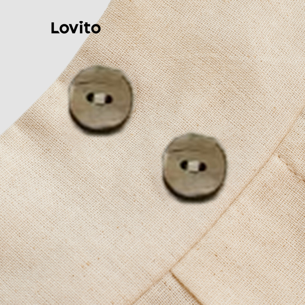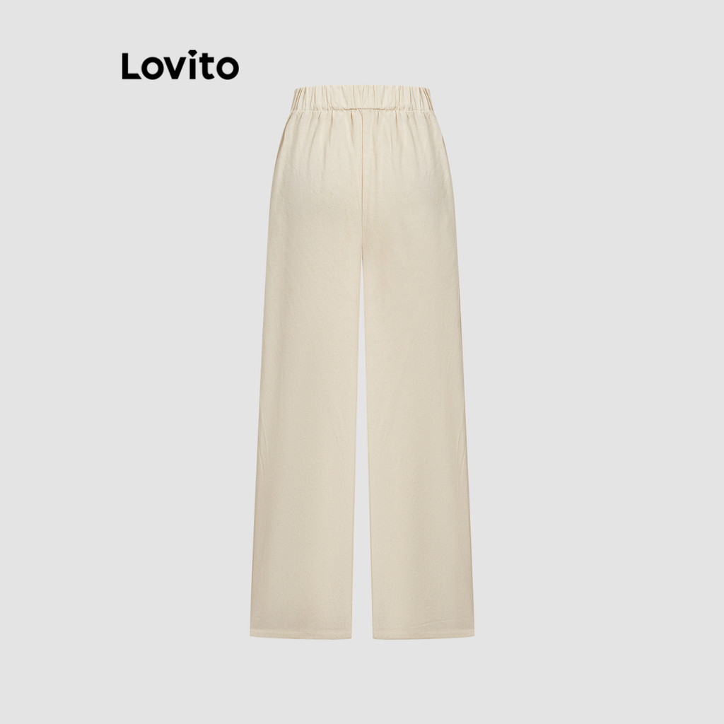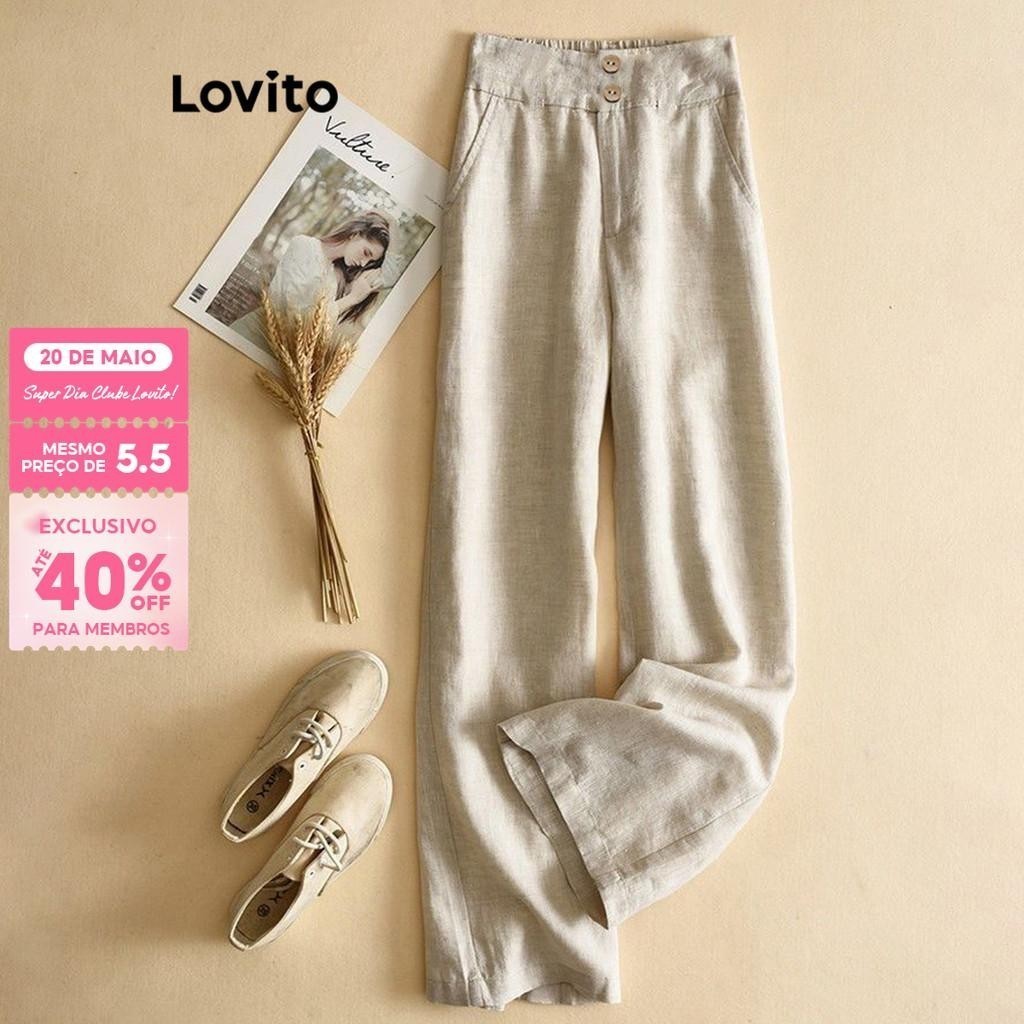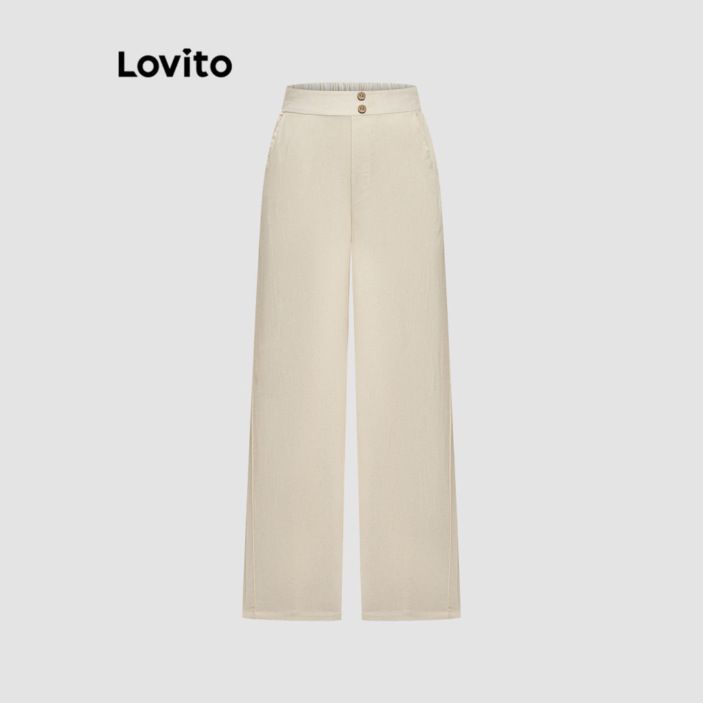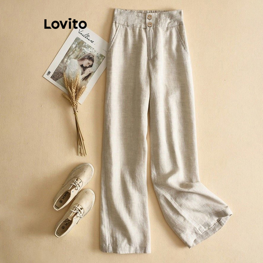 Lovito Calças Básicas De Linho Com Botões Frontais Para Mulheres LNE21224