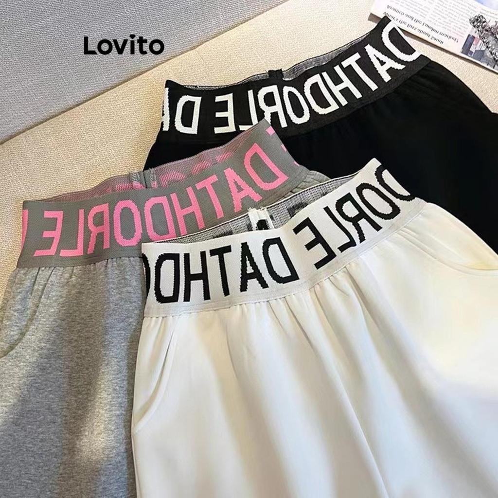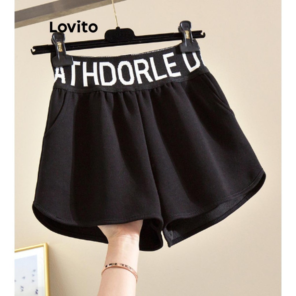Lovito Shorts Esportivos Esportivos Com Estampa De Letras E Bolso Shorts Esportivos Básicos Para Mulheres LNL56172