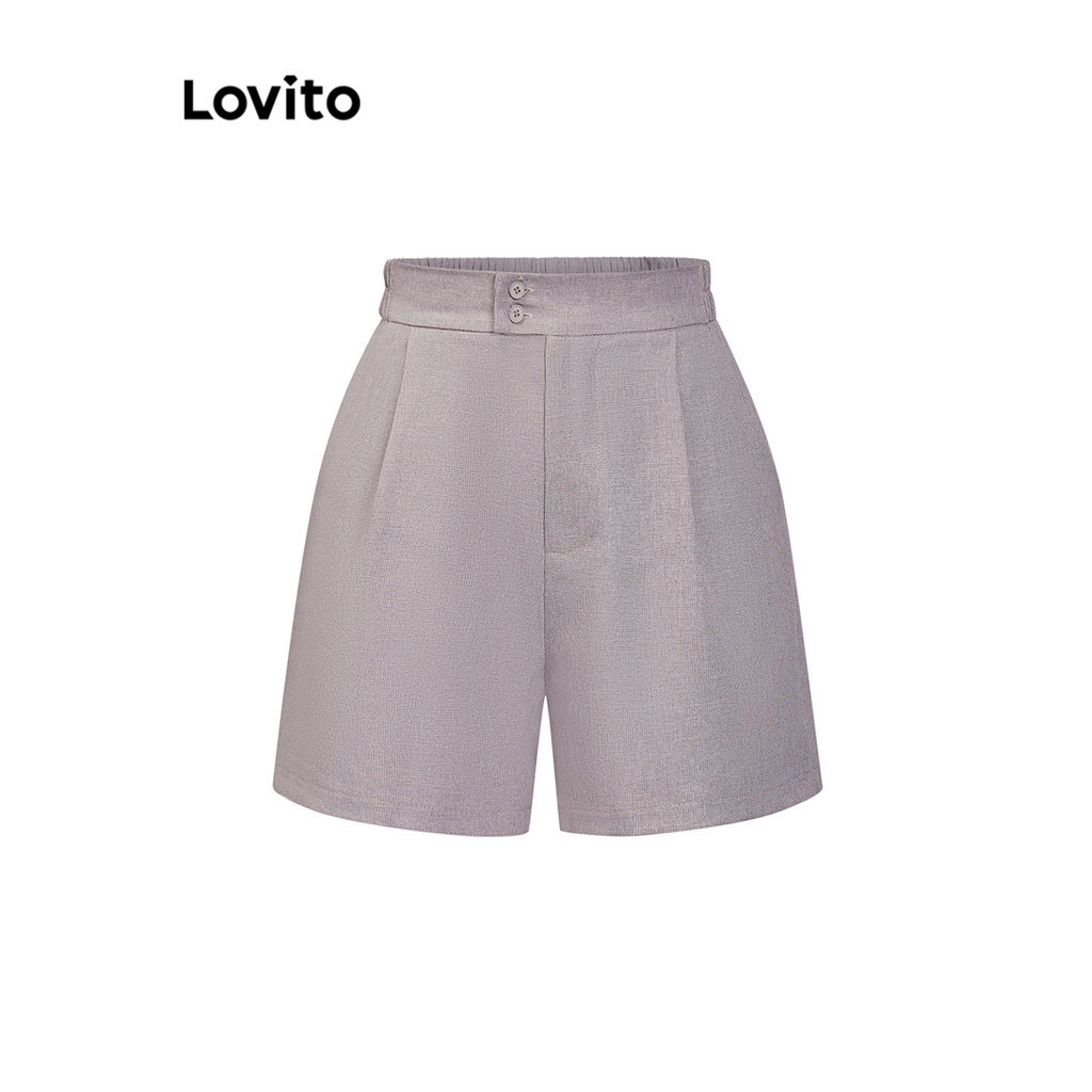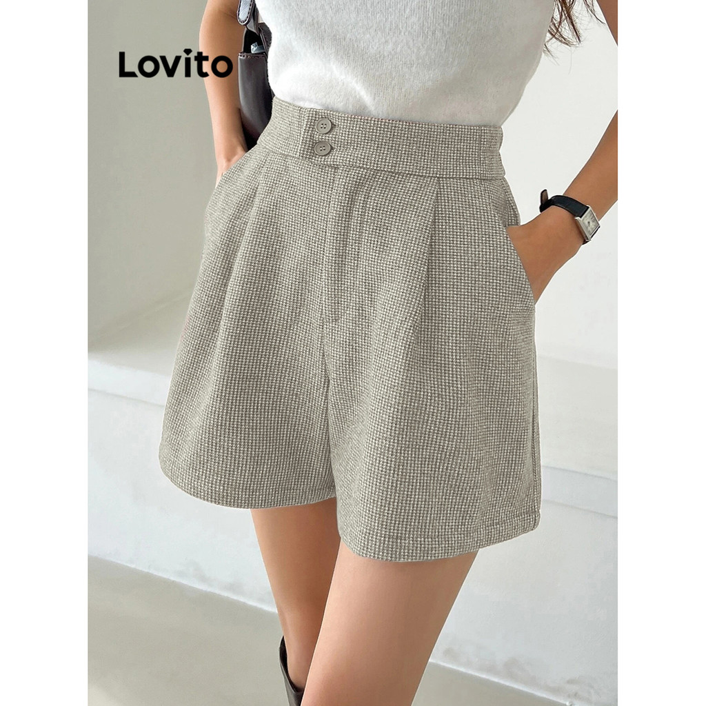 Lovito Shorts Casuais Shorts Guingão Com Botões Para Mulheres L70AD058 (Multicolorido)