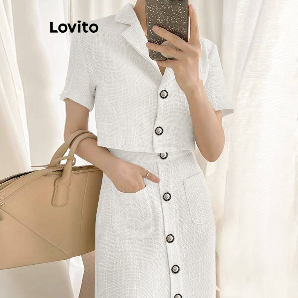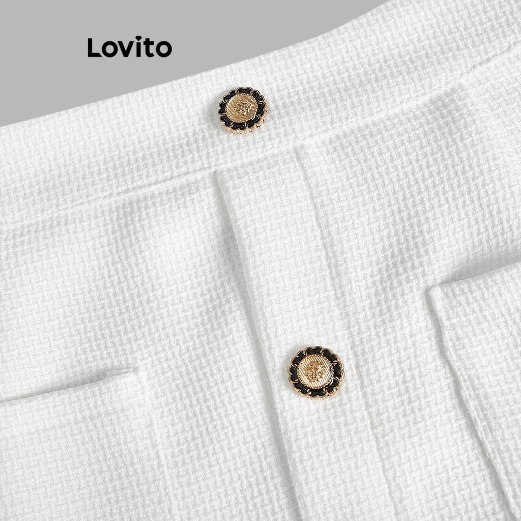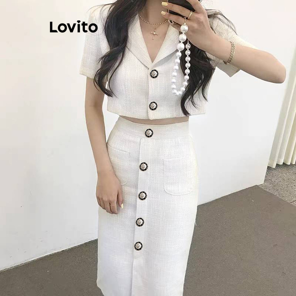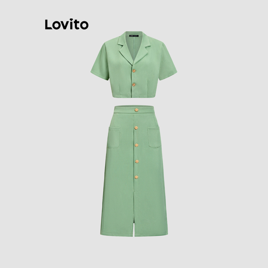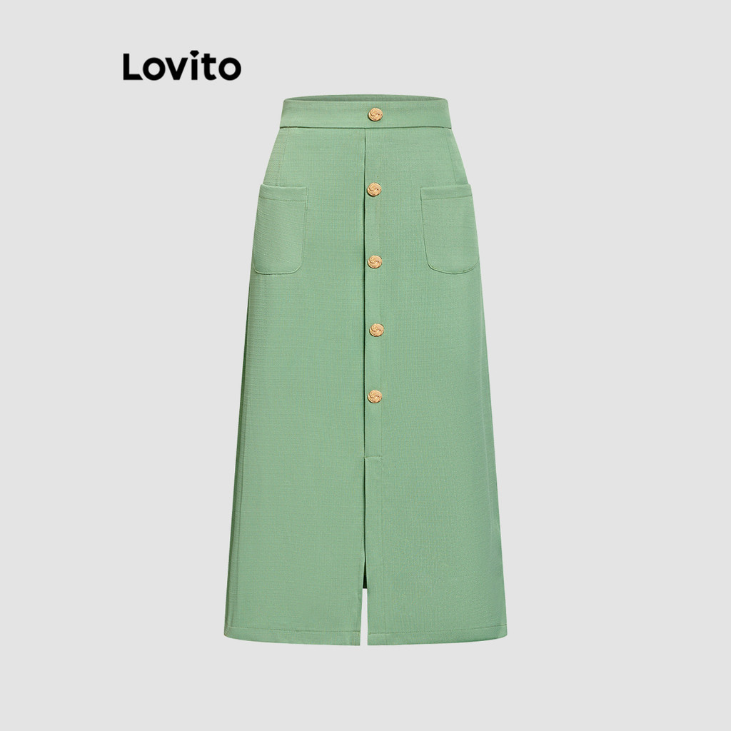 Lovito Conjuntos De Saia Casual Com Botão Liso Superior Ou Inferior Para Mulheres L67AD115