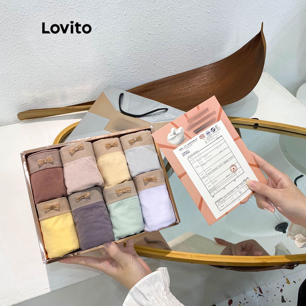 Lovito Casual Calcinha Feminina 8 Pçs Lisa Colorblock com Laço LNA15011 (Multicor)