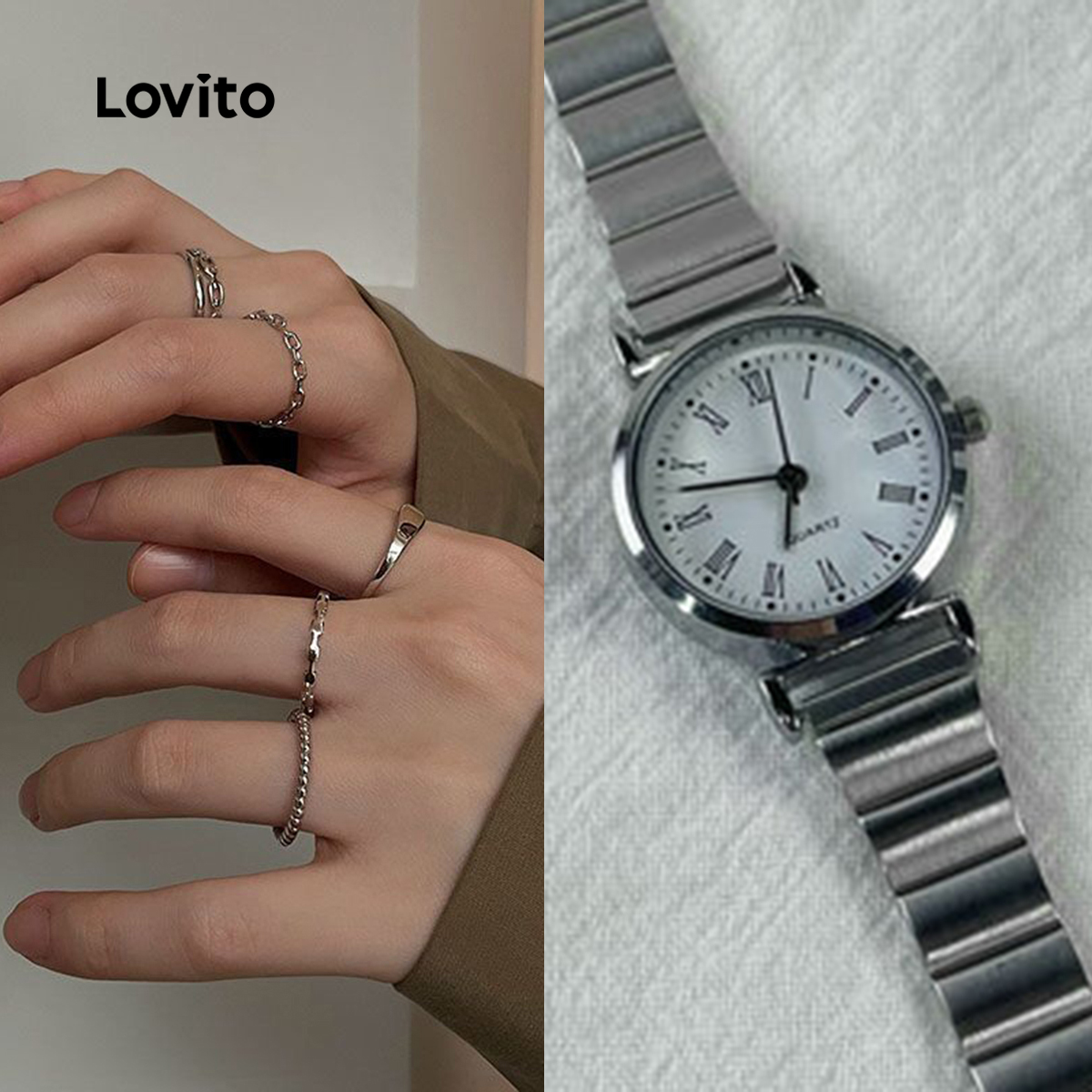 Lovito Relógio Casual De Quartzo Digital De Metal Com Textura Lisa Para Mulheres LNA13089 (Prata)