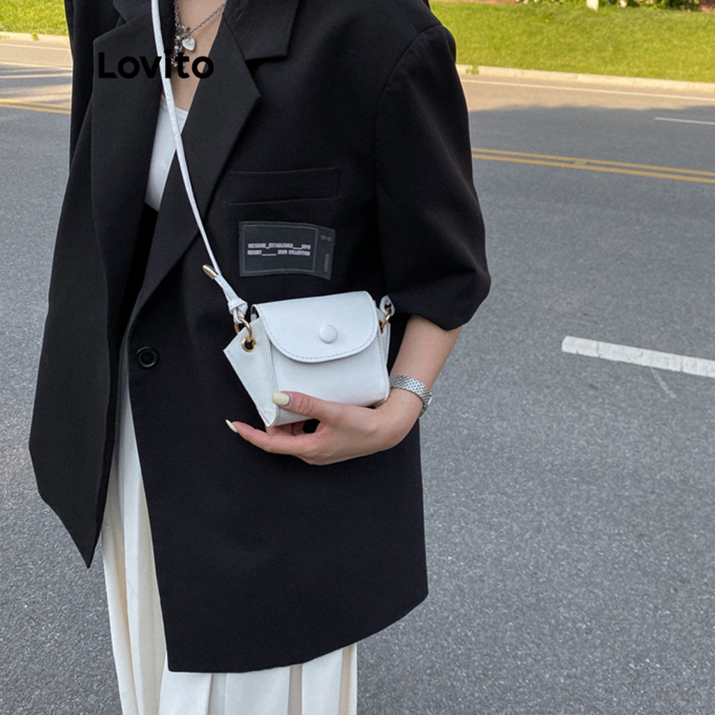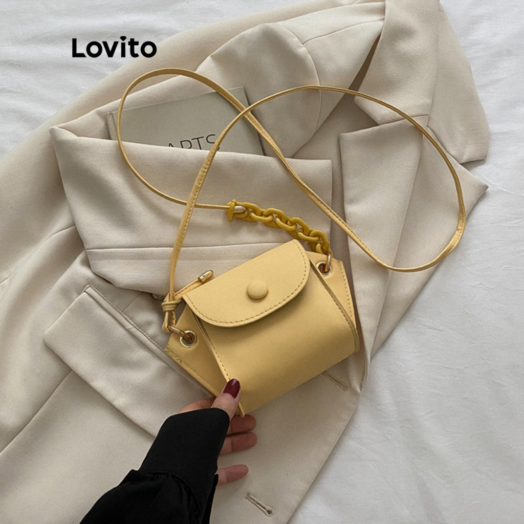 Lovito Bolsas de Ombro Pequenas com Botões Simples para Mulheres LNA13015 (Branco/Amarelo/Preto)