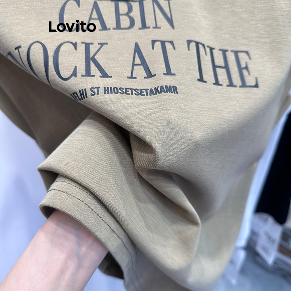 Lovito Camiseta Casual Acolchoada Com Letras Básicas Para Mulheres LNA24019 (Cáqui/Branco/Preto)