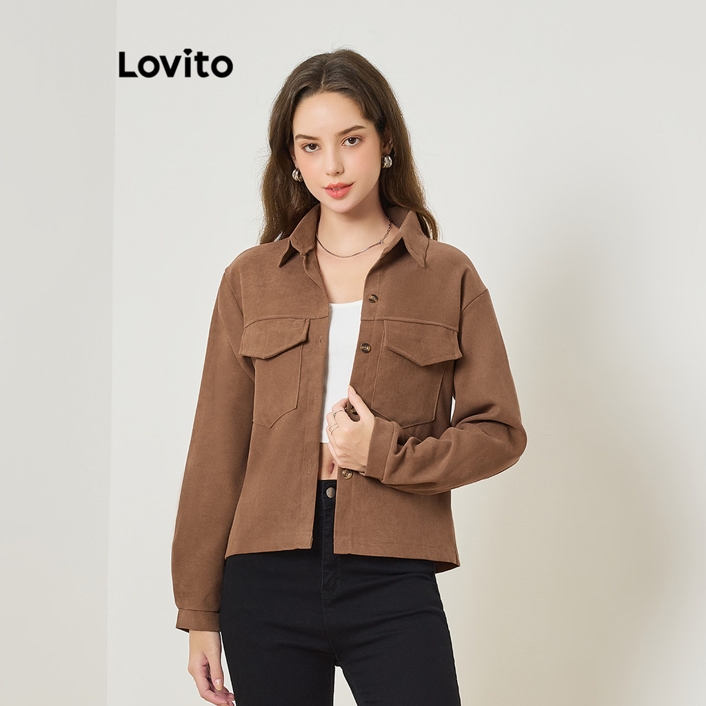 Lovito Blusa Casual Com Bolso Liso E Botão Frontal Para Mulheres LNA29011 (Multicolorido)