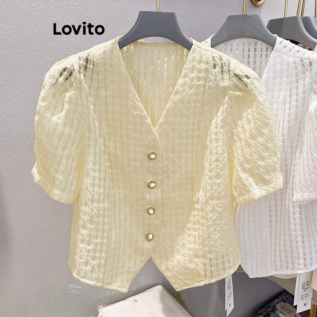 Lovito Blusa Casual Blusa Lisa Com Botões Para Mulheres LNL37095 (Multicolorido)