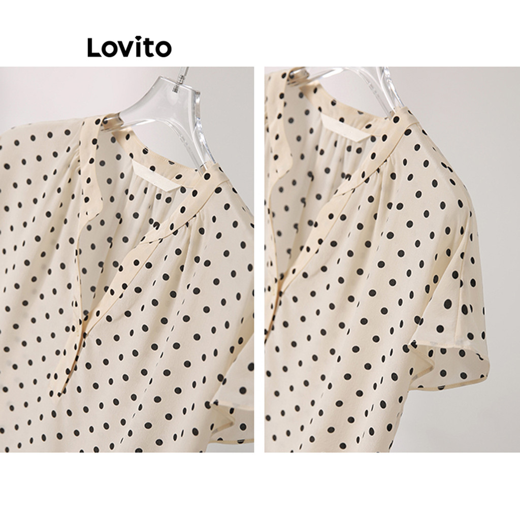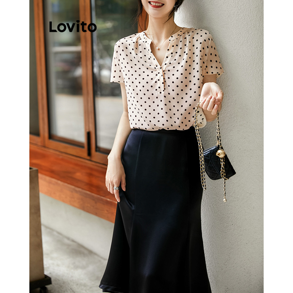 Lovito Blusa Elegante Com Bolinhas E Botão Frontal Temperamento Blusa Socialite Para Mulheres LNE27216 (Multicolorido)