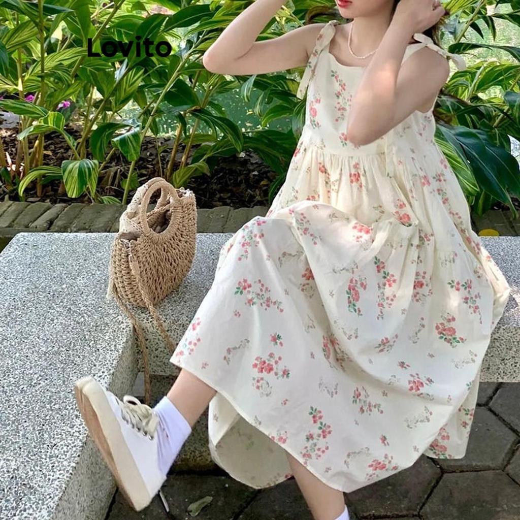 Lovito Vestido Casual Ditsy Floral Com Cadarço Para Mulheres LNA43094 (Multicolorido)