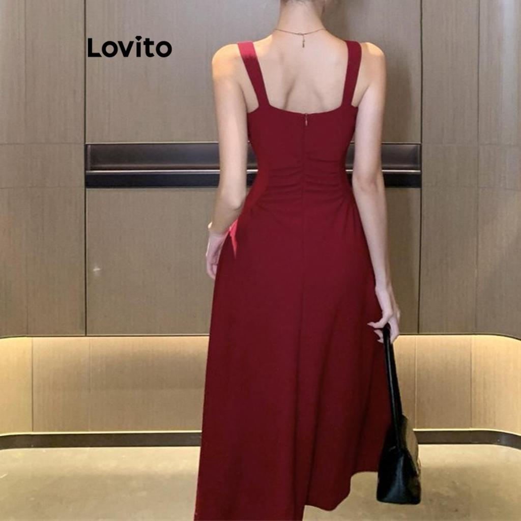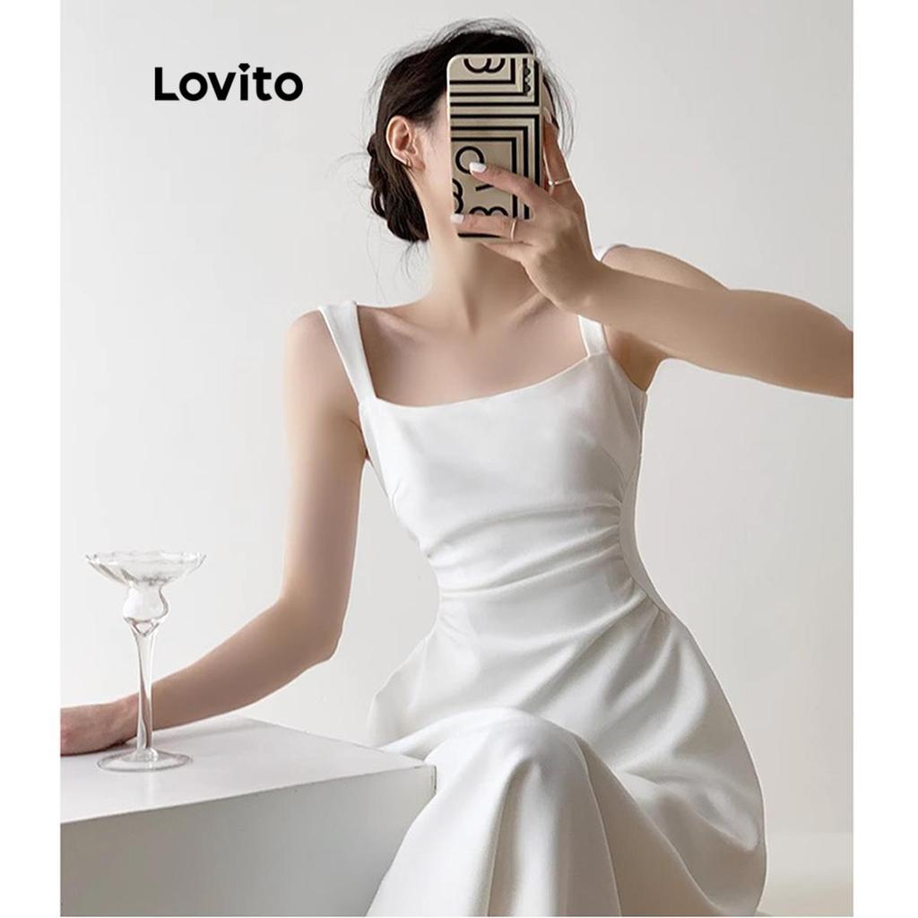 Lovito Vestido Casual Liso Com Pregas E Estrutura Em Linha Para Mulheres LNE55534