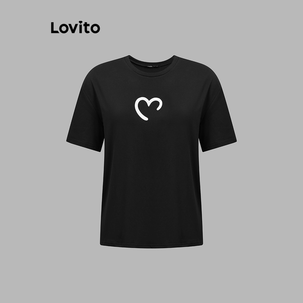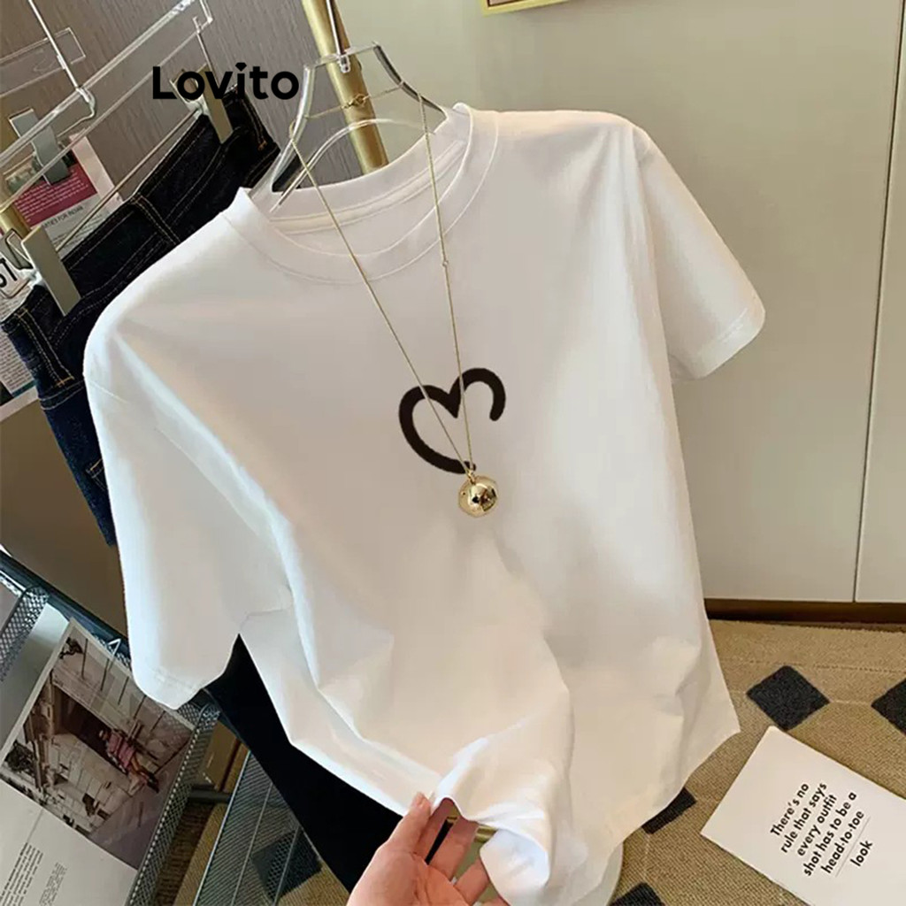 Lovito Camisa Casual Feminina Com Estampa De Coração - Verão/primavera Lnl71198 (multicolorida)