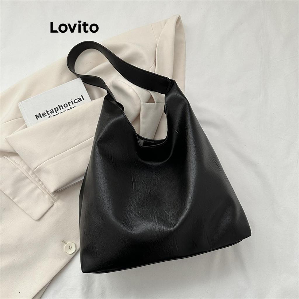 Lovito Bolsa de ombro leve casual com botão liso e elegante de grande capacidade para mulheres LFA45470