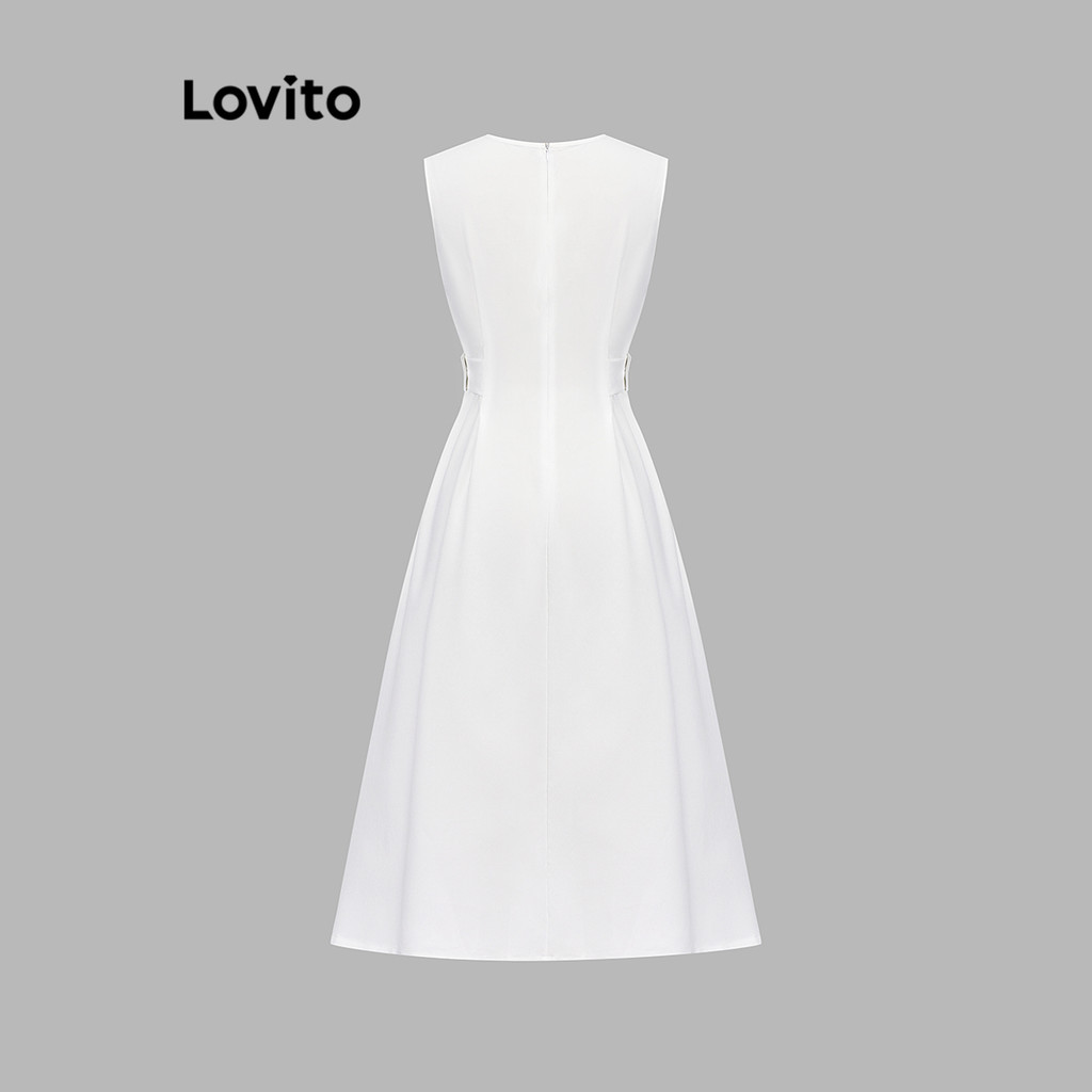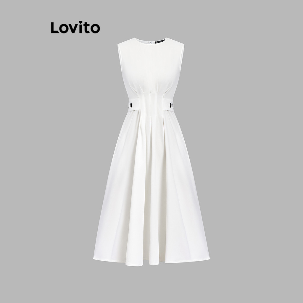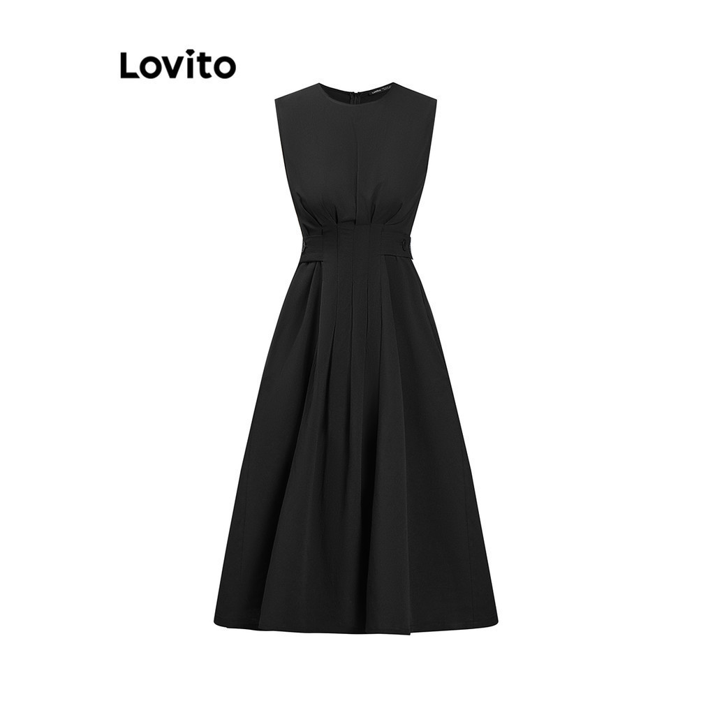 Lovito Vestido Elegante Vestido Liso Plissado Com Botões Para Mulheres L74ED183 (Multicolorido)