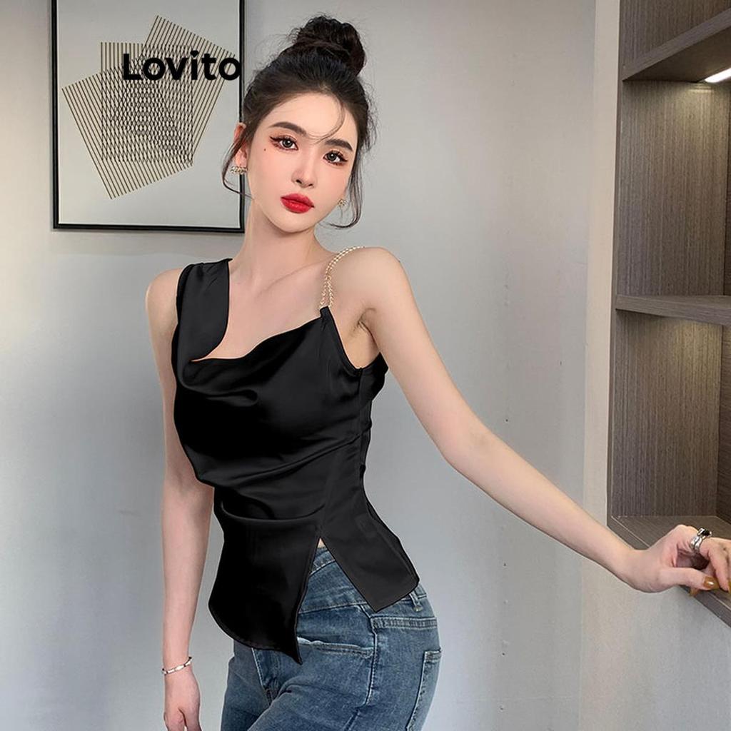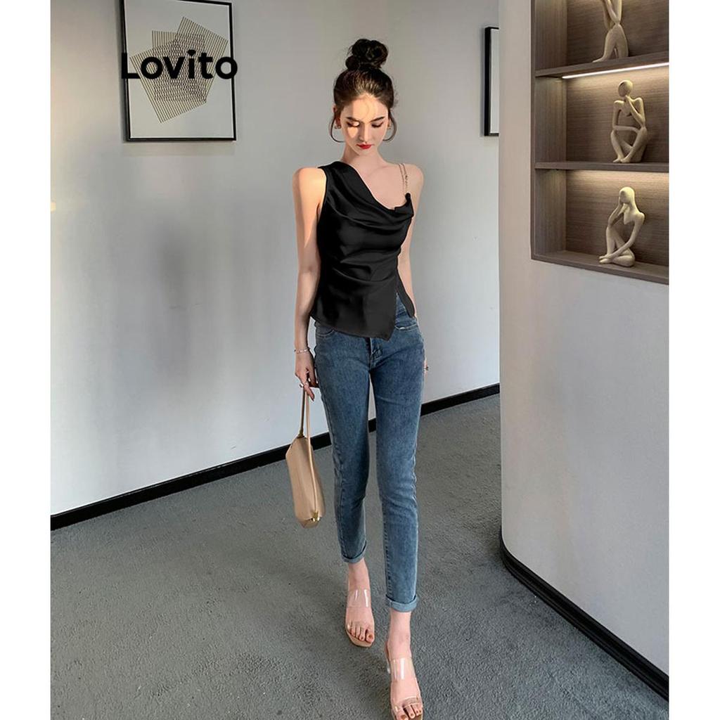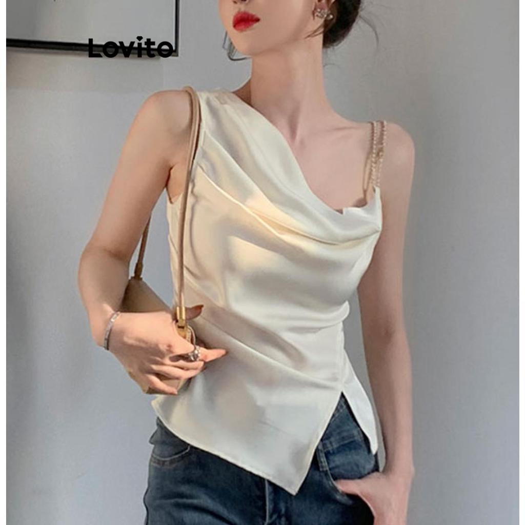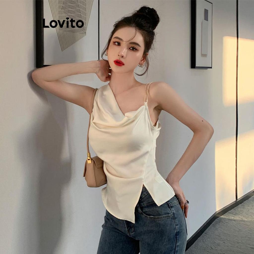 Lovito Regata Casual Lisa Assimétrica Dividida Camis Para Mulheres LNE49341